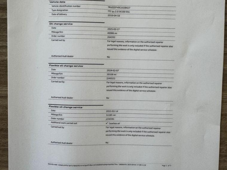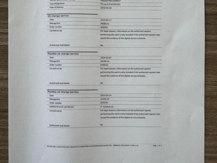 Boasting a single owner and a remarkably low mileage for its age, this 2016 Audi TT TFSI Sport is a standout example. This four wheel drive coupe features a 2.0 litre petrol engine and meets Euro 6 emission standards. Its provenance is further enhanced by a full dealership service history, with the last service completed on 17 February 2025 at 46, 968 miles. Inside, you'll find Alcantara leather super sport seats in Rock Grey, heated front seats for added comfort, and a premium Bang and Olufsen sound system for an exceptional audio experience. Practical features include manual air conditioning and hold assist.With only 50, 000 miles on the clock, this Audi TT offers excellent fuel economy, achieving up to 43 miles per gallon, and benefits from low CO2 emissions, indicating it is more efficient than many similar vehicles. The comprehensive 6 month warranty provides peace of mind, ensuring you can enjoy this stylish and well maintained coupe with confidence..