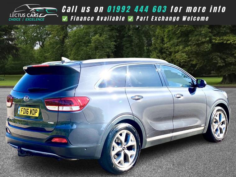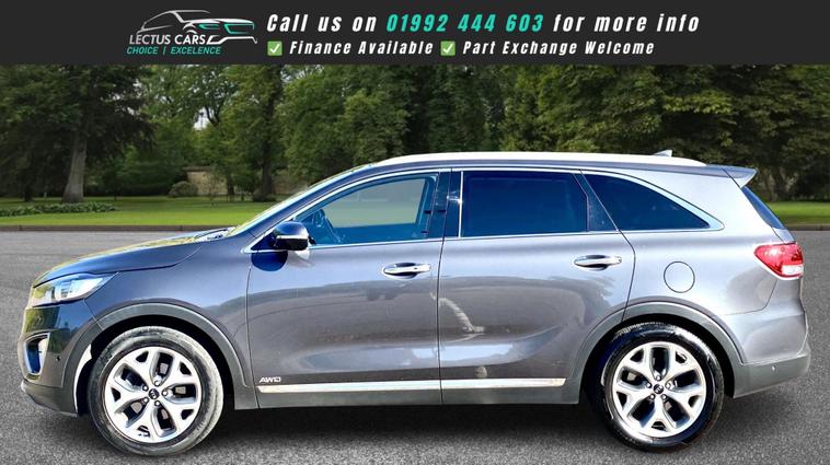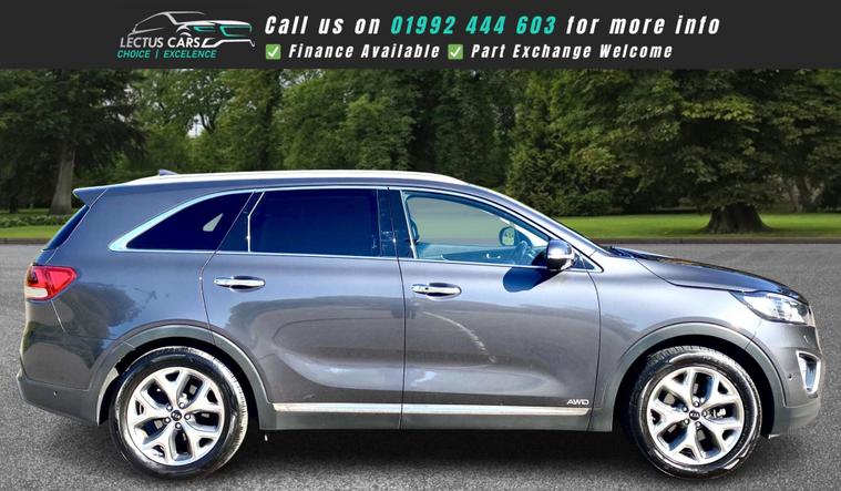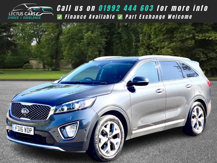 Finished in Metallic Grey with full Black Leather upholstery this All Wheel Drive 2016 Kia Sorento KX-4 2.2 Diesel has clocked up 121, 000 and is complimented by a Full dealership service-history and has just been serviced by us. Being the KX-4 the vehicle has a lovely specification, including 7 Seats. Sliding Panoramic glass roof. 19in Alloy Wheels. 2nd Row Sunblinds. 8in Touchscreen Satellite Navigation and incorporated within this unit there is the DAB Radio, RDS Radio with CD and MP3, Bluetooth with Music Streaming and Bluetooth with Voice Recognition along with Infinity Premium Sound System. Adaptive Cruise Control found on the Multi-Function steering wheel along with Audio and Phone Controls. Dual Automatic Air Conditioning with Ioniser. Heated Front Seats and Heated Outer Rear Seats plus Heated Steering Wheel. Park Assist System with Front and Rear Parking Sensors and Reversing Camera System. Smart Key Entry System with Engine Start-Stop Button. Drive Mode Select. Smart Power Tailgate, plus much more, see the specification listSEE THE VIDEO IN THE ADVERT or use this link: https://youtu.be/yntpLJcesXo?si=2FhgG6AmwYogTwBt0% Deposit when financing through us.DELIVERY AVAILABLE. The Car Comes With A 6 Month Premium Nationwide Parts And Labour Warranty Finance Available From 10.9 % Apr All Inspections Welcome AA/RAC Px Welcome Viewing By Appointment Only Please Call John On 01992692105 Or 01992692105.