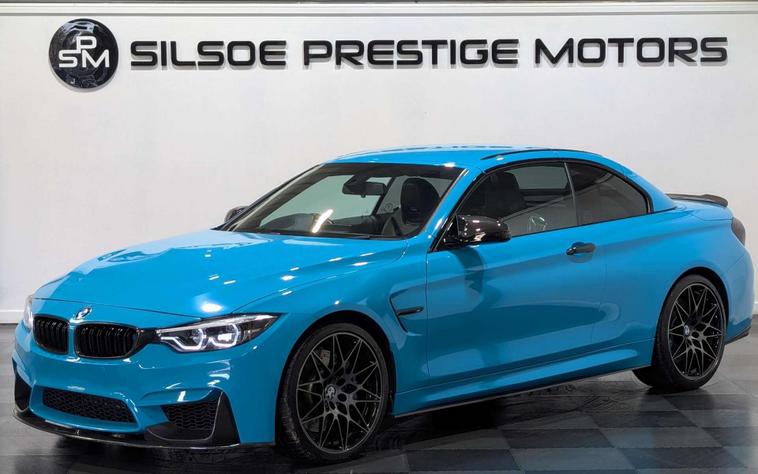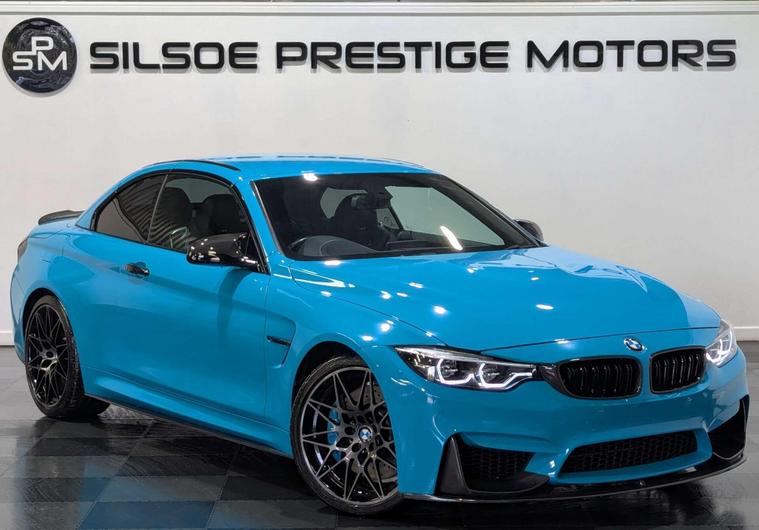 Introducing the stunning BMW 4 Series 3.0 M4 Competition Edition Package Semi-Auto 2dr. With only 20880 miles on the clock, this beauty is a true gem.Finished in a sleek White colour wrapped in Miami blue, this BMW 4 Series comes with a range of fantastic extras to enhance your driving experience. From the 20in Alloy Wheels - M Light Star-Spoke Style 666 M - Forged - Black, to the Advanced Parking Package and Convertible Comfort Package, every detail has been carefully considered.Step inside and you'll find luxury at every turn. The Interior Trim Finisher in Carbon Fibre with Black Chrome Finisher adds a touch of sophistication, while the Full Merino Leather in Black provides ultimate comfort. And let's not forget the impressive features like the Head-Up Display, Loudspeaker System by Harman Kardon, and the Reversing Assist Camera for added convenience.But that's not all - this BMW 4 Series also boasts a Steering Wheel that's Heated, a Warm Air Collar for those chilly days, and a Wind Deflector for a smooth ride with the top down.Don't miss out on the opportunity to own this exceptional vehicle. With its Mineral White finish and top-of-the-line features, the BMW 4 Series is sure to turn heads wherever you go.Wrapped In Miami blue20in Alloy Wheels - M Light Star-Spoke Style 666 M - Forged - BlackAdvanced Parking PackageConvertible Comfort PackageHead-Up DisplayInterior Trim Finisher - Carbon Fibre with Black Chrome FinisherLoudspeaker System - Harman KardonReversing Assist CameraSteering Wheel - HeatedWarm Air CollarWind DeflectorMineral WhiteFull Merino Leather - Black**WE CHARGE AN ADMIN ON ALL OUR VEHICLES***Here at Silsoe Prestige Motors, we're proud to be rated 4.8 stars on Google. We are regulated by the FCA and offer flexible finance options. Our finance team works with a variety of lenders and sub-lenders to secure the best possible deal for you, subject to terms and conditions. For more information on finance options, please contact our sales team at 01234532657 or via WhatsApp at 01234532657 or 01234532657.We also offer additional warranty packages up to 3 years at competitive prices.Other services include:Competitive prices on part-exchangeNationwide delivery optionsArranged video calls for car viewingsCeramic paint application on request at fair pricesInstallation of ghost immobilisers and trackers for enhanced security and reduced insurance premiumsDriveaway insurance available for up to 5 days on a fair price.For further details, please reach out to us at 01234532657, call 01234532657, or visit us in Silsoe, Bedfordshire MK45 4QR. Use ''Silsoe Prestige Motors'' in your maps for accurate directions. We are conveniently accessible from the A1 and the M1.Our opening hours are:Monday to Saturday: 9:30 AM - 6:00 PMSunday: 11:00 AM - 4:00 PMAll dealer facilities are available, including finance and warranty options. Vehicle specifications are provided by a third party, so please confirm details with our sales team. All our cars are HPI clear, and we also buy cars at trade prices.For our full range of vehicles, visit Silsoe Prestige Motors. For any inquiries, call, text, or WhatsApp our sales team on 01234532657.Please note that data is pulled from a third-party source, so please confirm specifications with one of our sales team member.Please visit dealer's website for our full range of stock..