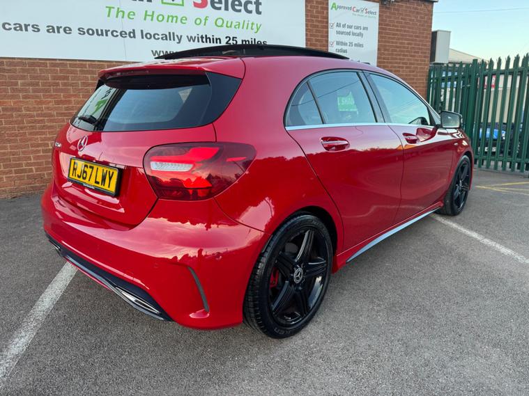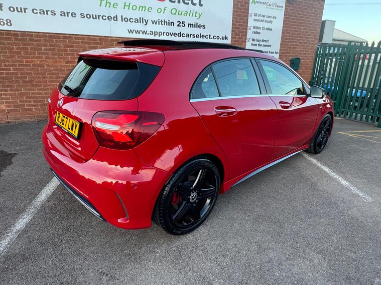 JUST ARRIVED AWAITING PREPARATION This 2017 Mercedes Benz A250 AMG (Premium) is a remarkable example, boasting an exceptionally low mileage of just 31, 000 miles for its age. As a Euro 6 compliant model, it features a potent 2.0 litre petrol engine, delivering an impressive 0-62mph acceleration time of 6.3 seconds. The AMG trim enhances its sporty appeal, while the Premium designation ensures a wealth of desirable features. You'll appreciate the comfort provided by four way lumbar support for both the driver and front passenger, and the advanced LED High Performance headlights with integrated daytime running lights and automatic high beam assist. The convenience of Headlamp Assist, which automatically activates the headlights, is also included.This A Class is designed for both performance and practicality, offering ample boot space for your everyday needs and weekend adventures. Its advanced technology extends to the Parking Pilot system, complete with front and rear parking sensors, and a 180 degree reversing camera with parking guidelines, making manoeuvring in tight spaces significantly easier. These features, combined with its low mileage and strong acceleration, demonstrate how this particular Mercedes Benz A250 AMG stands out from other vehicles in its class, offering a superior driving and ownership experience..