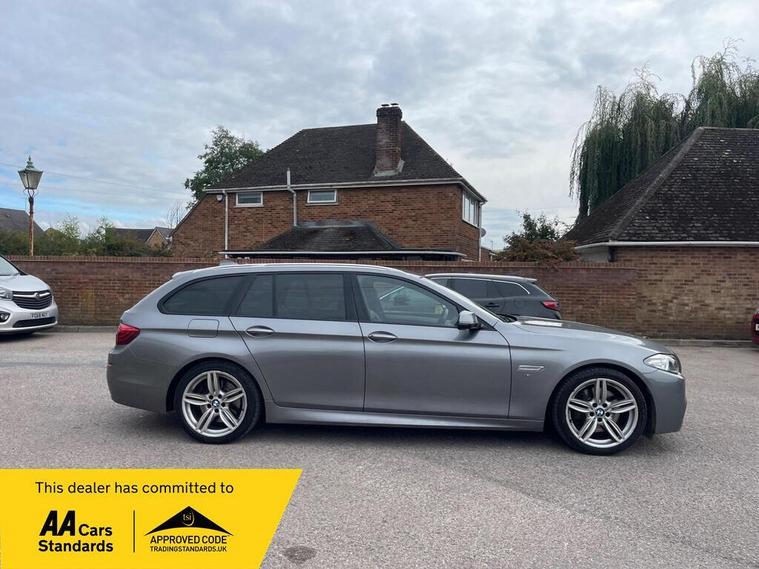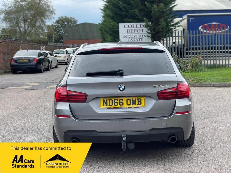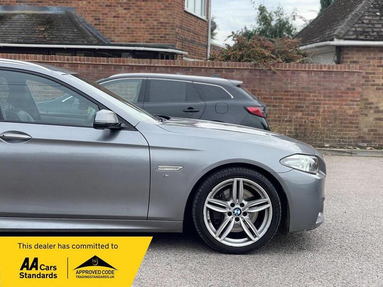 This 2016 BMW 5 Series 535d M Sport is a Euro 6 compliant diesel saloon offering a compelling blend of performance and luxury. Finished in the desirable M Sport trim, this model boasts a powerful 3.0 litre diesel engine, capable of accelerating from 0 to 62 miles per hour in a swift 5.4 seconds. Inside, you'll find a wealth of premium features designed for comfort and convenience, including a heated steering wheel, heated front seats, and the impressive Harman Kardon loudspeaker system for an exceptional audio experience. Connectivity is also seamless with Bluetooth hands free and audio streaming.The M Sport styling is further enhanced by 19 inch M Double Spoke alloy wheels, giving this 5 Series a dynamic and sporty stance. Practicality is not overlooked, with generous boot space making it ideal for both daily commutes and longer journeys. The combination of its rapid acceleration, sophisticated interior amenities, and the renowned BMW driving dynamics, particularly in the M Sport configuration, sets this 535d apart from other vehicles in its class, offering a truly engaging and refined driving experience..