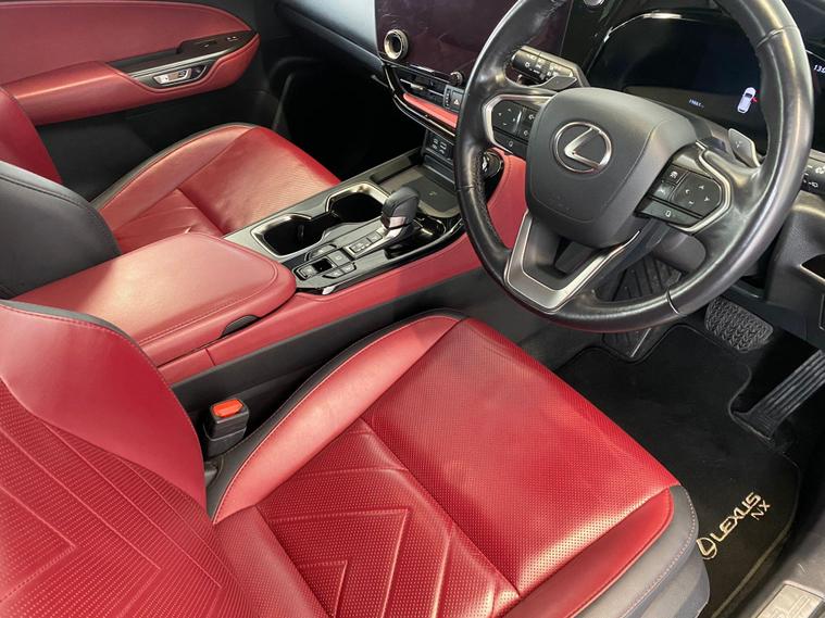 ULEZ COMPLIANT|2 KEYS |PETROL HYBRID | AUTOMATIC | KEYLESS ENTRY | RED INTERIOR | PARKING SENSORS | ELECTRIC DRIVER & PASSANGER SEAT ADJUSTMENT | RADIO | HEATED DRIVER & PASSANGER SEAT | COOLING DRIVER & PASSANGER SEAT | HEATED STEERING | BLUETOOTH | NAVIGATION | ALL WHEEL DRIVE | ELECTRIC TAILGATE | WIRELESS PHONE CHARGING | USB | TYPE C | ELECTRIC MIRRORS | MEMORY SEATS | APPLE CAR PLAY | ANDROID AUTO | HEADS UP DISPLAY | AUTO WIPERS | PADDLE SHIFT | AUTO HEADLIGHTS | LANE ASSIST | CRUISE CONTROL | ECO, SPORT, NORMAL DRIVE OPTION | EV MODE | AUTO HOLD BRAKE | HPI CLEAR |FREE AA BREAKDOWN COVER WITH ALL PURCHASES|FINANCE & WARRANTY AVAILABLE|DELIVERY AVAILABLE NATIONWIDE | £99 ADMIN FEEThis 2022 Lexus NX 350h boasts exceptionally low mileage for its age, having covered just 19, 900 miles, and comes with a clear vehicle history check. This Four Wheel Drive model features a 2.5L Petrol Hybrid engine, meeting Euro 6 emission standards. Inside, you'll find comfort and convenience with front heated seats, dual zone climate control air conditioning, and seamless connectivity through Bluetooth mobile phone connectivity, wireless Apple CarPlay, and wired Android Auto. A reversing camera is also included to aid with parking. Experience impressive performance with the Lexus NX 350h, capable of accelerating from 0 to 62mph in just 7.7 seconds, demonstrating its capability compared to other vehicles in its class. The generous boot space offers practicality for all your needs, making this a versatile choice for everyday driving and longer journeys..