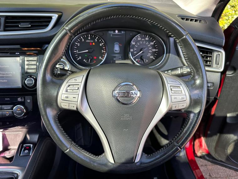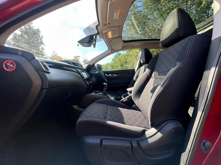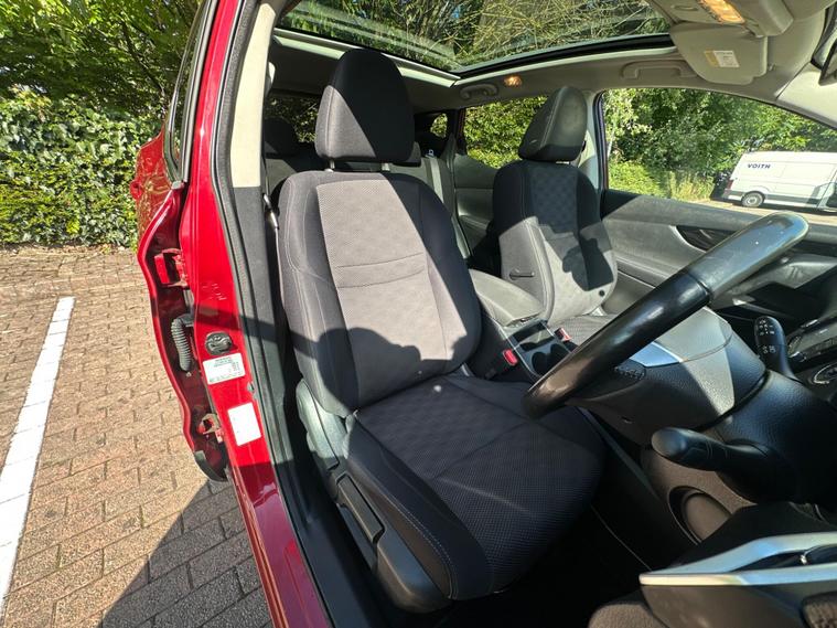 Nissan Qashqai 1.2 DIG-T n-tec+ 2WD Euro 5 (s/s) 5dr. A very well-maintained vehicle presented in Red. The car is ULEZ Compliant with only 1 previous owner and a full service history. It includes 18inch Alloy Wheels, Panoramic Roof, Automatic Headlights, Cruise Control with Speed Limiter, 360 Degree Camera View, Reverse Camera, Front and Rear Sensors, Lane Assist, Traction Control, Keyless Entry, Tyre Pressure Monitoring System, Hill Start Assist, Air Conditioning, Climate Control, Electric Windows, AUX/USB Connection, DAB Digital Radio, Touchscreen Infotainment, Bluetooth, Isofix, and many more extras and luxurious features to maximise comfort. A guaranteed mileage at 60, 200. The car comes with, 6 months warranty, 12 months roadside assistance, 12 months roadside cover, drive away insurance. Car looks amazing and feels great to drive. Recently inspected by the AA with no faults. First to come will buy. UK delivery, finance options and virtual viewings are available. Please do not hesitate to contact us for any enquiries, viewings and inspections..