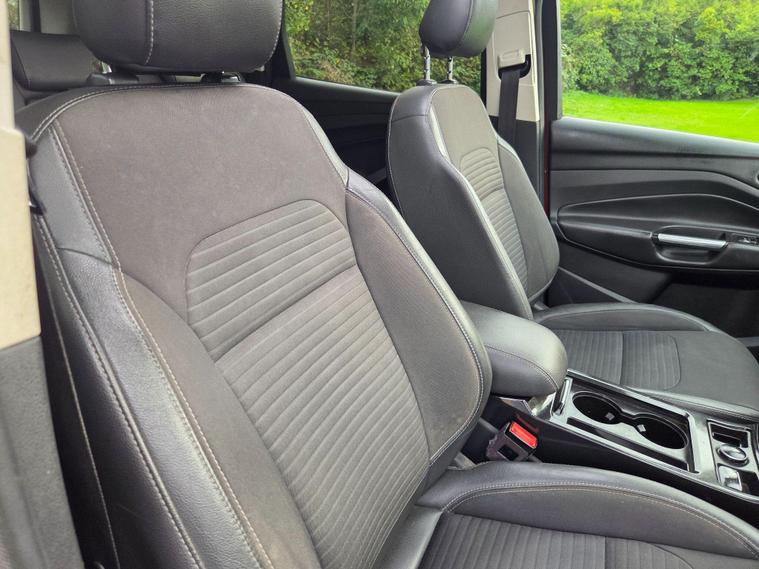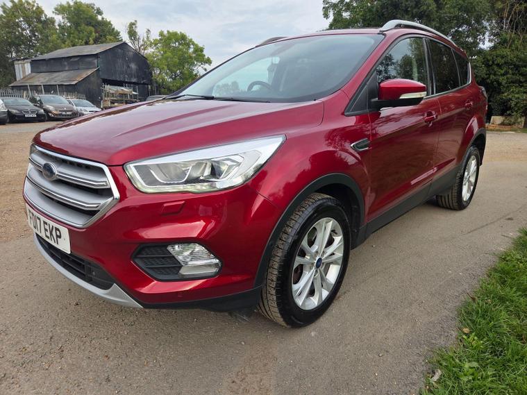 This 2017 Ford Kuga TDCi Titanium offers an exceptional blend of efficiency and technology, boasting an impressive fuel economy of 60 mpg. This Euro 6 compliant model features a robust 2.0L diesel engine and comes equipped with the Titanium trim, ensuring a premium experience. Inside, you'll find the advanced SYNC 3 system with an 8 inch colour touchscreen, offering seamless Bluetooth connectivity, voice control, a USB port, and emergency assistance. Comfort is further enhanced by DEATC dual zone electronic automatic temperature control, ensuring a pleasant cabin environment for all occupants.The Ford Kuga TDCi Titanium also benefits from automatic halogen headlights with distinctive LED daytime running lights, and convenient keyless opening for effortless access. Parking is made simpler with rear parking sensors, providing added confidence when manoeuvring. This particular model stands out with its low insurance group and low CO2 emissions, indicating it is more economical to own and run compared to many similar vehicles..