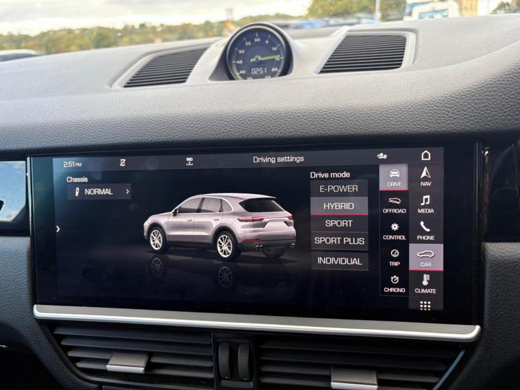 This 2019 Porsche Cayenne V6 E-Hybrid presents a unique opportunity, having been cherished by only one owner since new. This impressive plug in hybrid SUV boasts a powerful 3.0 litre petrol engine combined with electric power, delivering an exhilarating 0-62mph in just 5.0 seconds. Its Four Wheel Drive system ensures confident handling in all conditions, while its Euro 6 emission class reflects its modern efficiency.Inside, you'll find a host of features designed for comfort and convenience. Enjoy dual zone climate control with separate temperature settings for the driver and front passenger, and let the Driving Light Assistant with automatic coming home lights and LED headlights illuminate your path. Stay connected with Connect Plus, including Apple CarPlay, and navigate tight spaces with ease thanks to ParkAssist, which provides visual and audible warnings from both front and rear sensors. The generous boot space further enhances its practicality for everyday life and longer journeys..