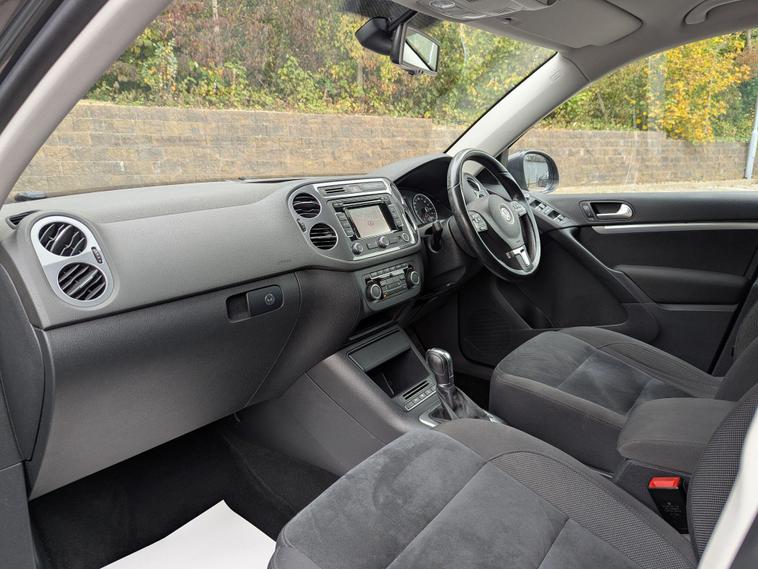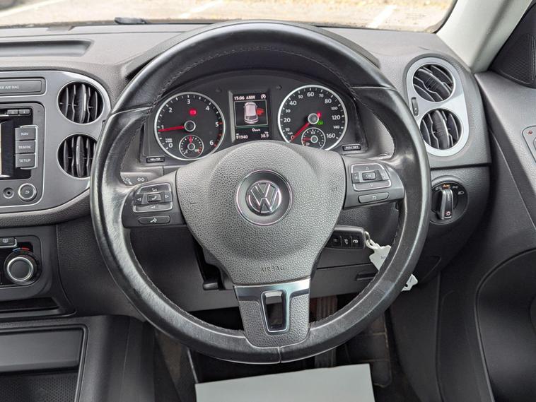 This 2015 Volkswagen Tiguan TDI Match offers excellent peace of mind with a 12 month MOT provided on purchase and a 3 month warranty. This four wheel drive model is powered by a 2.0 litre diesel engine and boasts a generous towing weight of 2200 kg. It comes with a partial service history, and its low insurance group makes it an economical choice.The Tiguan TDI Match is well equipped for comfort and convenience. Enjoy the ease of Bluetooth telephone preparation, allowing for hands free calls. Stay comfortable in all conditions with 2 zone electronic climate control, and navigate tight spaces with confidence thanks to front and rear parking sensors, further enhanced by the Park Assist system. These features demonstrate how this Tiguan is a superior option for those seeking a capable and well appointed SUV..
