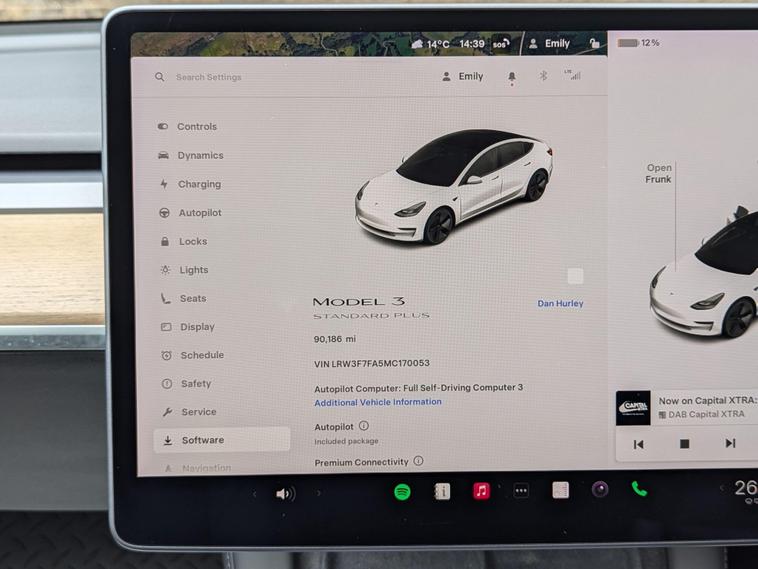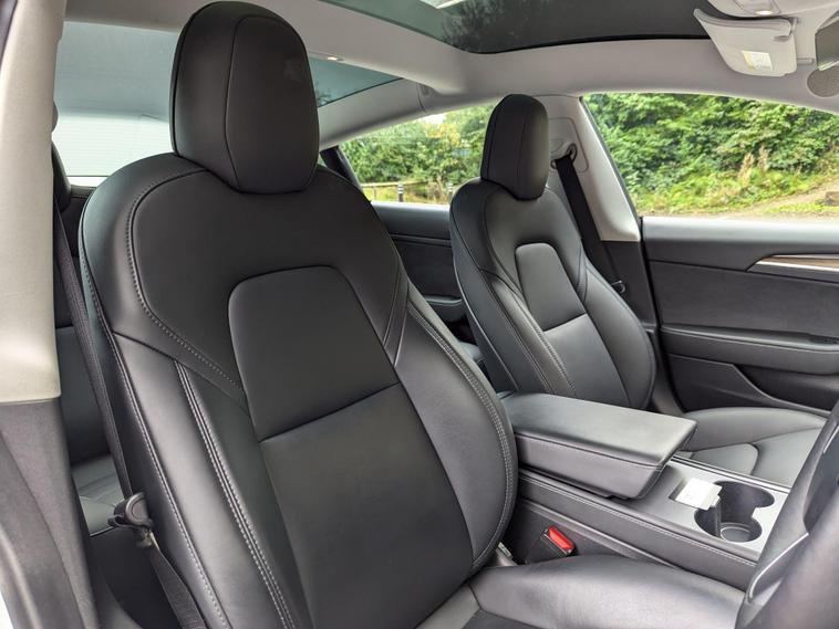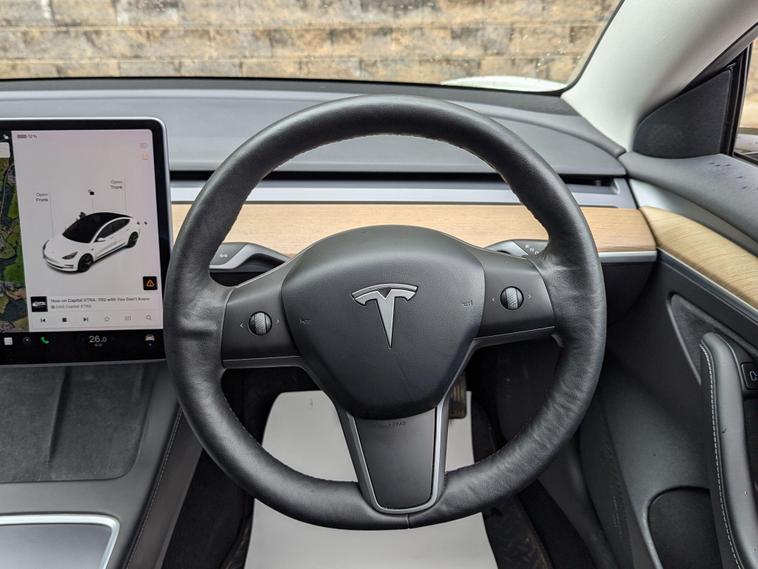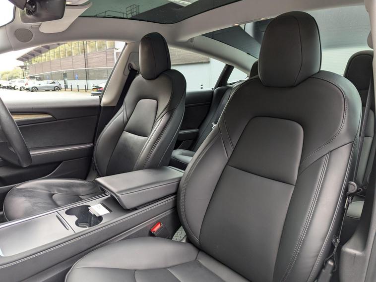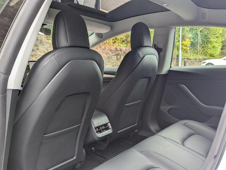 This 2021 Tesla Model 3 Standard Range Plus is a superb example, having had only one owner since new. This electric vehicle boasts a 53 kWh battery offering a maximum range of 278 miles when new. Charging is convenient, with a full charge at home taking approximately 7 hours and 10 minutes using a 7kW charger, while rapid public charging can take you from empty to 80% in just 29 minutes. The car comes with a 3 month warranty and a 12 month MOT will be provided upon purchase, ensuring peace of mind.Inside, you'll find a host of desirable features designed for comfort and convenience. Enjoy the fixed panoramic glass roof, keyless entry and start, and air conditioning. The 12 way power adjustable front and rear seats are heated, perfect for those colder days. Parking is made easier with the park assist camera system. Furthermore, the Model 3 offers generous boot space, making it a practical choice for everyday use and longer journeys, setting it apart from many other vehicles in its class..