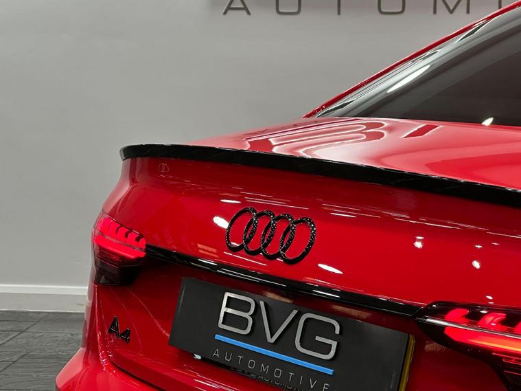 2022 Audi A4 2.0 TFSI 40 Black Edition S TronicREG: KR72 OEMNATIONWIDE DELIVERY AVAILABLE - BVGWe are pleased to present this Audi A4 2.0 TFSI 40 Black Edition S Tronic Euro 6 (s/s) 4dr, finished in Red with Half Leather-Cloth Interior.Key Features & Specification:✔ 19'' Alloys✔ Black Exterior Pack✔ Bang & Olufsen Sound System✔ Virtual Cockpit✔ Ambient Lighting✔ Flat-Bottom Steering Wheel✔ Heated Front Seats✔ Front & Rear Parking Sensors✔ 360 Degree Surround Camera✔ Electric Folding Mirrors✔ Apple CarPlay & Android Auto✔ Bluetooth & DAB Radio✔ Navigation System✔ Cruise Control✔ Keyless Start & Stop/StartTHIS VEHICLE IS RECORDED AS CATEGORY S DUE TO PREVIOUS REAR-END DAMAGE. IT HAS SINCE BEEN FULLY AND PROFESSIONALLY REPAIRED TO A HIGH STANDARD. AN INDEPENDENT ENGINEER’S REPORT WILL BE PROVIDED FOR COMPLETE PEACE OF MIND. THE VEHICLE IS HPI CLEAR IN ALL OTHER ASPECTS.Vehicle Details:• Registered: November 2022• Owners: 2 Owners• Service History: Service History (Recently Serviced)• MOT: 12 Months Included (Free)• Warranty: Complimentary 3-Month Warranty• HPI Clear: Certificate ProvidedWhy Buy From Us?? Competitive Finance Rates – Affordable finance options available to suit your budget.? Viewing by Appointment Only – Schedule a test drive with our expert sales team.? Nationwide Delivery Available – Hassle-free delivery to your doorstep.? Flexible Payment Options – Debit & Credit Cards Accepted.? Part Exchange Welcome – Competitive trade-in valuations offered.? Open 7 Days a Week – Convenient hours to suit your schedule.? Call us today on 01616232752 to request a personalised video or arrange a viewing.? Visit dealer's website to explore our full range of stock.While we make every effort to ensure accuracy, please confirm all details with our sales team before visiting..