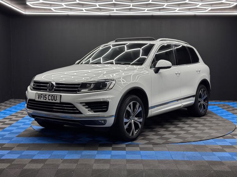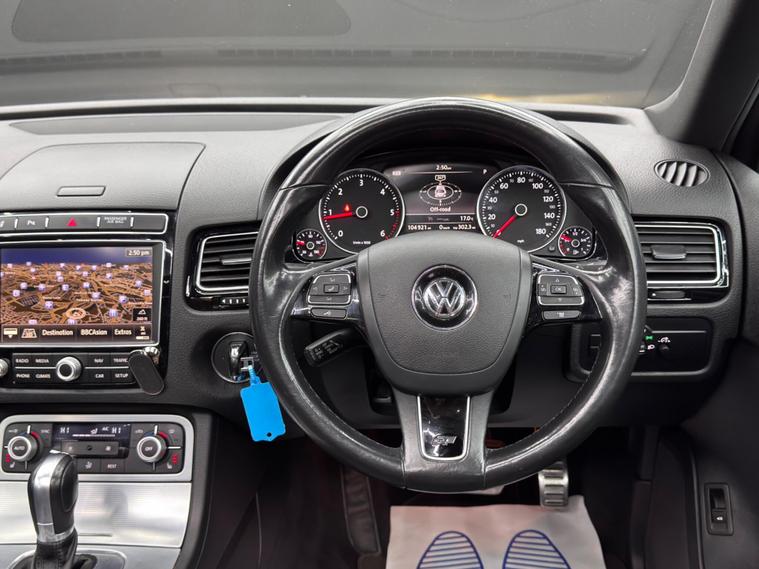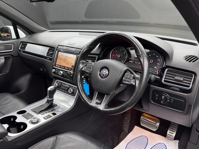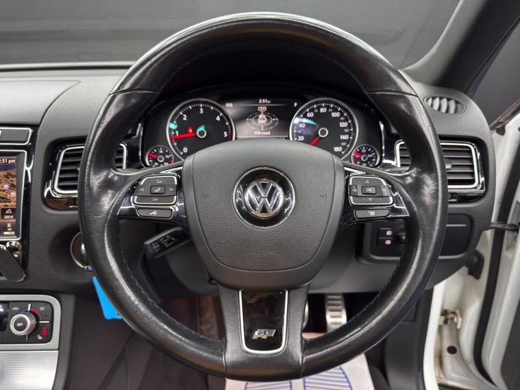 Here at Motor Gurus we are delighted to offer a Volkswagen Touareg 3.0 TDI V6 BlueMotion Tech R-Line Tiptronic 4WD. This vehicle is in immaculate condition inside and out. This specific vehicle is finished in a GLOSS WHITE and is contrasted with a BLACK LEATHER interior. This vehicle comes included with: FRONT & REAR PARKING SENSORS, SLIDING GLASS PANORAMIC ROOF, CRUISE CONTROL, AUTOMATIC HEADLIGHT CONTROL, TWIN CUPHOLDERS, AUTO BRAKE HOLD, KEYLESS START, FRONT HEATED SEATS, CLIMATE CONTROL, SAT NAVIGATION, DAB RADIO, BLUETOOTH AUDIO, TELEPHONE CONNECTIVITY AND MUCH MORE! Our Volkswagen Touareg 3.0 TDI V6 BlueMotion Tech R-Line Tiptronic 4WD has come to us with FULL SERVICE HISTORY and 2 KEYS! We will also provide this vehicle with a 12 MONTH MOT as well as a FRESH OIL SERVICE before it leaves our premises (OTR)..