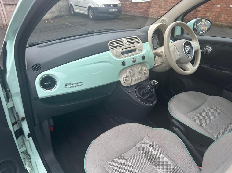 3m National Warranty Plus AA cover included, 6 stamps in the history Plus Freshly serviced here with October 2026 MOTThis Pistachio Green Fiat 500 LOUNGE With PAN ROOF, Air Con and BLUETOOTH , is an Ideal first car as it's a cheap to insure stylish car that will make you smile each time you drive, has both keys and the handbooks too, it is of course HPI clear and is still a great little car! At The Oaks Motor Company, we are a family-run business and aim to please with around 60 cars in daily stock. Let us know how we can help and we'll get you moving! Appointments at a time to suit you including out-of-hours. Part exchanges a pleasure.§.
