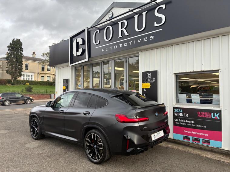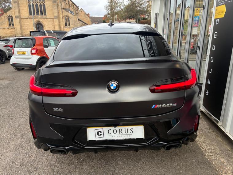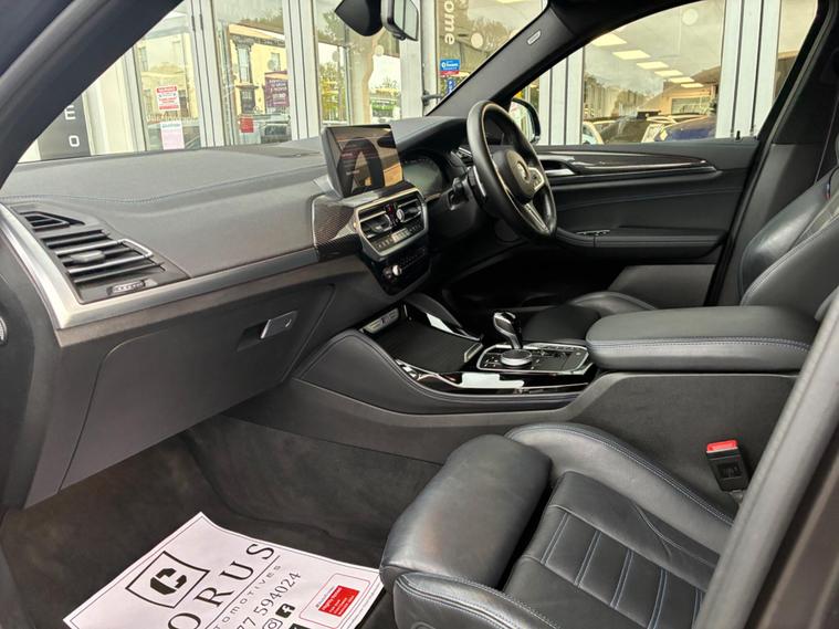 This 2022 BMW X4 M40d Pro Edition is a superb example, having had only one owner and boasting a clear vehicle history check. This four wheel drive model features a powerful 3.0 litre diesel hybrid engine, meeting Euro 6 emission standards. It comes equipped with the desirable Pro Edition trim, enhancing its already impressive specification. Notable features include a heated steering wheel for comfort in colder months, a Visibility Pack with LED headlights for superior illumination, and a Technology Package that incorporates a Head Up Display and a premium branded sound system. The Comfort Package adds convenient keyless entry, further complementing the already included heated steering wheel.The X4 M40d Pro Edition offers a compelling blend of performance and practicality. Its impressive acceleration, reaching 0-62mph in just 4.9 seconds, highlights its dynamic capabilities. The inclusion of a Harman Kardon Surround Audio Sound System provides an exceptional listening experience, indicating a higher level of audio quality compared to standard offerings. Furthermore, the generous boot space ensures ample room for luggage or shopping, making it a versatile choice for everyday use and longer journeys..