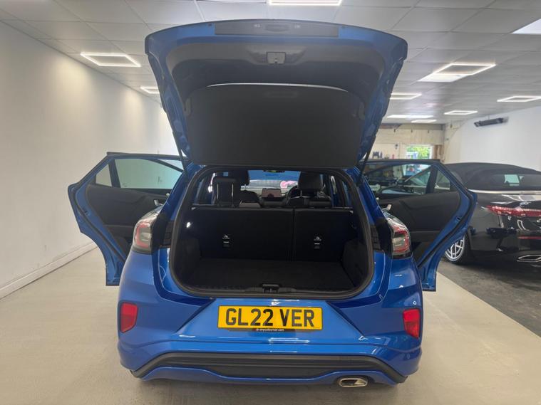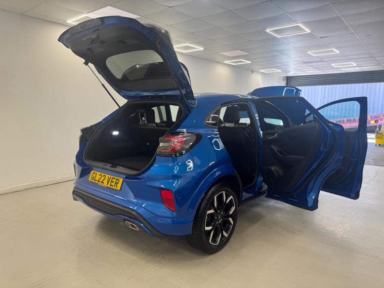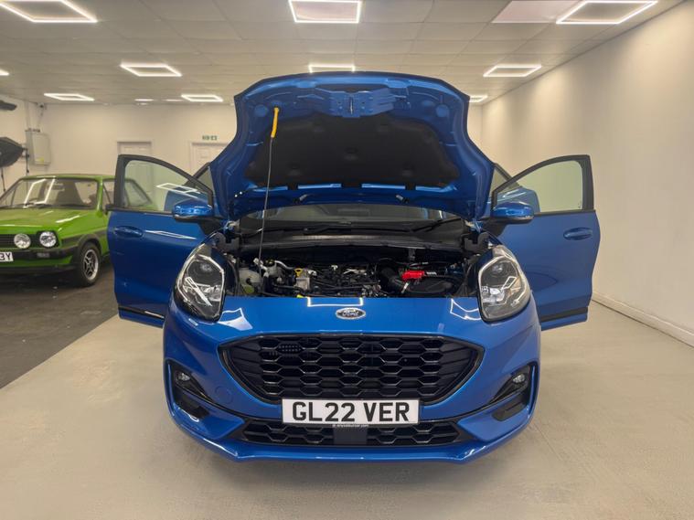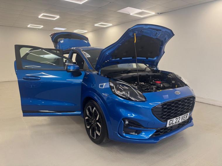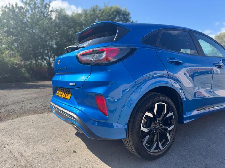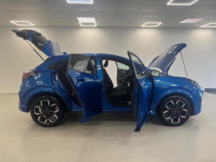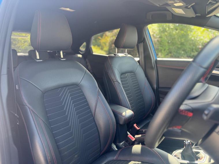 We’re delighted to offer this stylish and sporty Ford Puma 1.0T EcoBoost MHEV ST-Line X Euro 6, finished in the eye-catching Desert Island Blue, a colour that perfectly complements the vehicle’s dynamic design and sharp ST-Line styling.This Puma stands confidently on 18-inch diamond-cut alloy wheels, adding a premium and athletic edge to its exterior. The sleek silhouette is further enhanced with rear privacy glass, giving the vehicle a refined and sporty finish.Inside, the cabin features leather and Alcantara sports seats with striking red stitching, blending comfort with performance-inspired detailing. The driver-focused cockpit includes a digital dashboard and a multifunctional steering wheel with adaptive cruise control, allowing for a seamless and controlled driving experience.Stay connected on the go with Apple CarPlay and Android Auto integrated into the infotainment system, while satellite navigation ensures you stay on track with ease. Parking sensors make manoeuvring effortless, rounding out a well-equipped specification that enhances both convenience and safety.With its bold styling, mild-hybrid efficiency, and impressive level of technology, this ST-Line X Puma is an excellent choice for drivers who want engaging performance with everyday practicality. Hi.