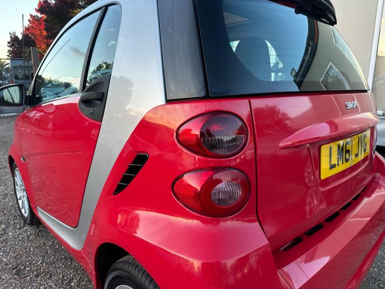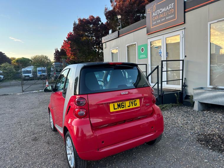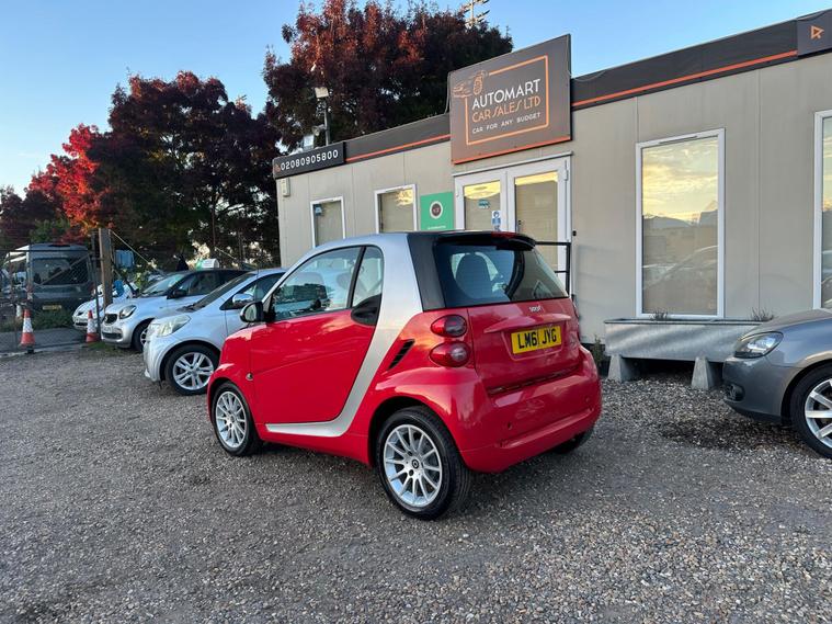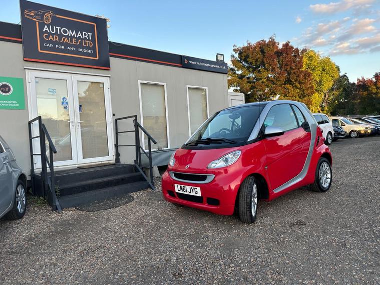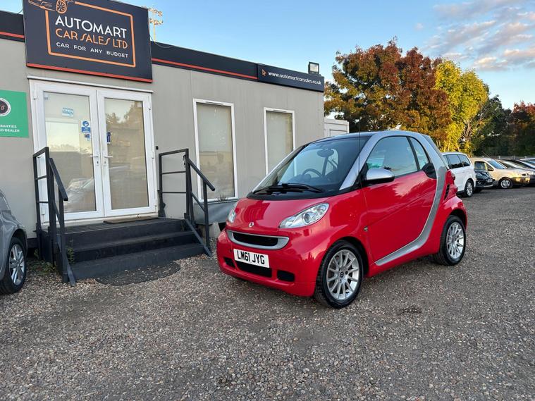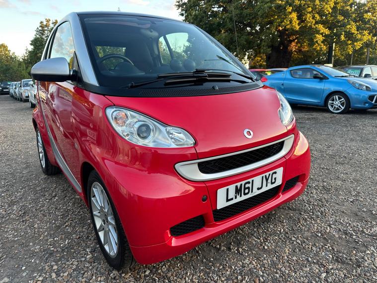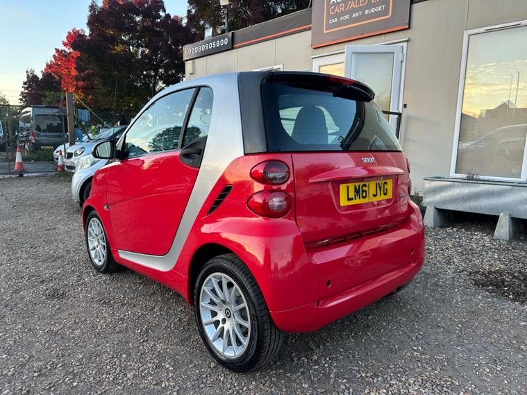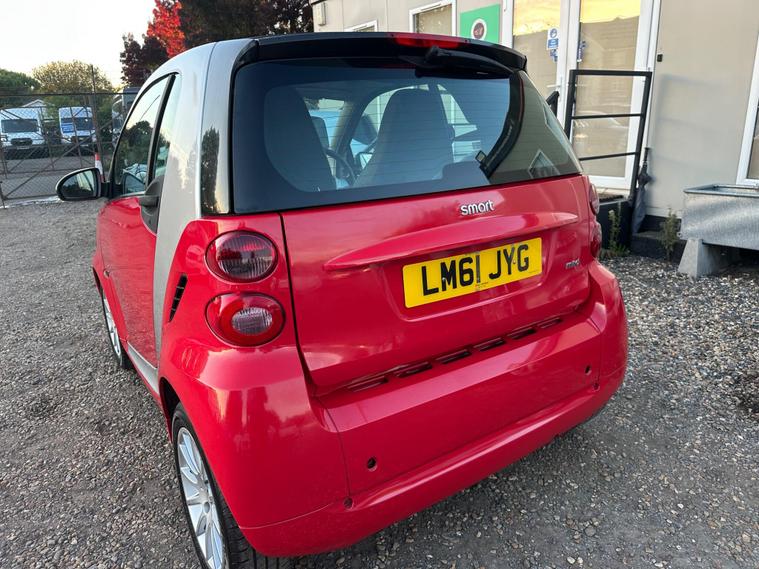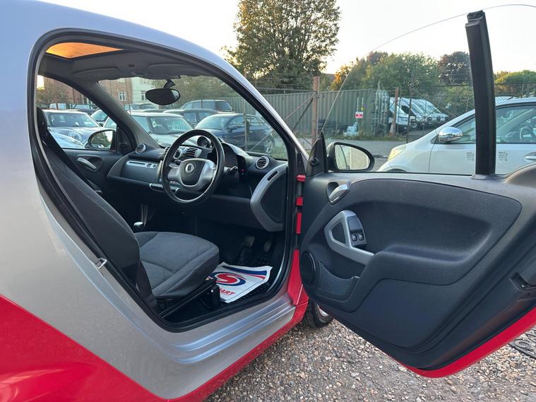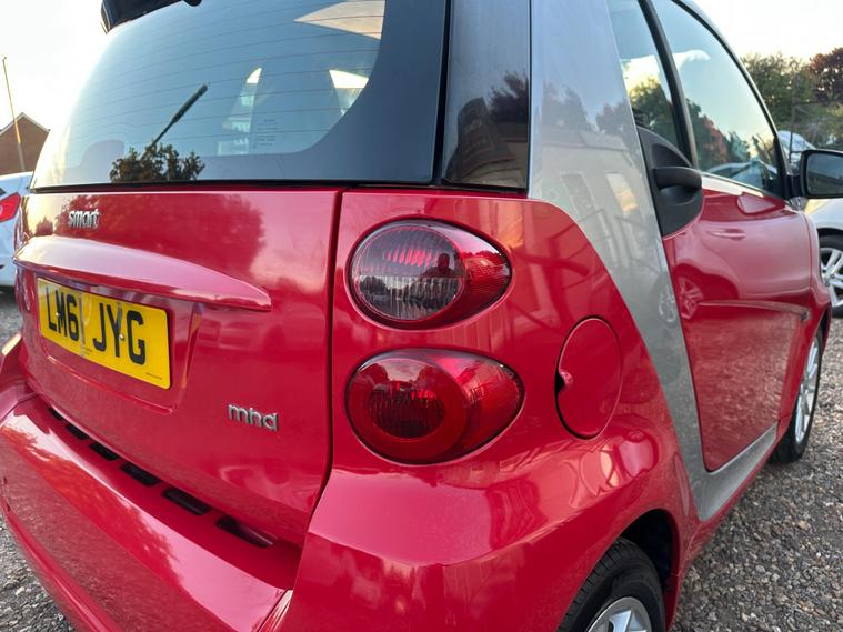 ******** SAME DAY FINANCE AVAILABLE ******** COMES WITH 03 MONTHS FREE WARRANTY ********* **********PERFECT EXAMPLE OF EXCELLENT CAR********* Another Perfect example of 2011 Smart fortwo 1.0 MHD Passion SoftTouch Euro 5 (s/s) Auto SE Special Edition , 2 dr Hatchback , 2 Seats 70 bhp with Metallic Red / Black Colour and Full Grey / Black Velour Interior which has just covered 94000 miles (warranted) . A U T O M A T I C , 94000 Miles , 2011 Smart fortwo 1.0 MHD Passion SoftTouch Euro 5 (s/s) Auto SE Special Edition , 2 dr Hatchback 70 bhp , 2 Seats , 61 Reg , Metallic Red/ Black Colour , Excellent Condition , Full Grey / Black Velour Interior , Power Steering , Remote Central Locking , Adjustable Steering Column / Wheel , Front and Rear Head Restraints , Immobiliser , Front and Rear Fog Lights , Traction Control , Iso-fix child seat , A I R C O N D I T I O N I N G / Climate Control , Anchor Points , A B S , Body colour Bumpers , Multiple Air - bags , Electric Mirrors , Radio / CD Player , Alloy Wheels , Just been Fully Valeted , Full Service History + Old m.o.ts to Prove Mileage , 4 Good Tyres , M.O.T Till JULY 2026 , Ideal First / Family Car , Very Clean in and out , Cheap to Run and insure , Cheap to Tax , Price for Quick sale ..