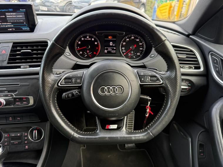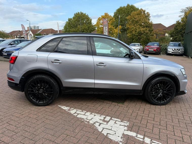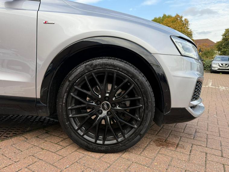 This 2017 Audi Q3 TFSI Black Edition boasts a clear vehicle history, offering you peace of mind. This stylish SUV features a powerful 2.0 litre petrol engine paired with a four wheel drive system, ensuring confident handling in all conditions. As a Euro 6 compliant vehicle, it meets modern emissions standards. Inside, you'll find luxurious Fine Nappa leather sports seats with S Line embossing, providing both comfort and a sporty feel. The Black Edition trim enhances its sophisticated appearance.Experience convenience and comfort with the All Weather LED headlights, which automatically adjust to lighting conditions, and the Light and Rain Sensor. Navigating tight spaces is made easier with the Audi Parking System Plus, featuring front and rear parking sensors. You can maintain your ideal cabin temperature with the Dual Zone Electronic Climate Control. This Q3 accelerates from 0 to 62 miles per hour in a swift 7.6 seconds, demonstrating its dynamic performance which sets it apart from many other vehicles in its class..