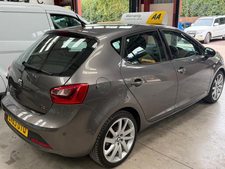 SEAT Ibiza 1.2 TSI FR Euro 5 5dr, CV63OTU, 2014 (63), 148, 920 miles, Petrol, Manual, Grey, ULEZ. Great condition car, drives perfectly, Full service history. Just serviced by us and sold with 12 months MOT. All our vehicles will come with minimum 3 months AA warranty, nationwide delivery, part exchange welcome. For other stock please view our retailer stores page, please call text or WhatsApp for more information. Book your live video or in person appointment today. All vehicles available for test drive. PLEASE READ OUR REVIEWS. FEATURED SPEC: 12 Volt Power Supply in Centre Console, 16in Alloy Wheels - Cartago, AUX-In Port, Air Conditioning, Cornering Function, Cruise Control, Electric Windows - Front with One-Touch and Anti-Squeeze, Electrically Adjustable and Heated Door Mirrors, Electronic Stability Control - ESC, Front Fog Lights with Cornering Function, Front Passenger Airbag De-Activation, Headlights - Electric Adjustment, Leather Gear Knob, Leather Steering Wheel, Sports Suspension, Steering Wheel - Audio Controls, Tinted Windows PLUS MUCH MORE!.