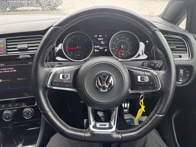 WE ARE PLEASED TO OFFER THIS HIGHLY DESIRABLE HIGH SPECIFICATION WELL MAINTAINED RARE LOW OWNERSHIP EURO SIX AUTOMATIC VOLKSWAGEN GOLF 2.0 TDI BLUEMOTION TECH R-LINE DSG FIVE DOOR + FINISHED IN THE BEST COLOUR OF INDIUM GREY METALLIC PAINTWORK AND IS COMPLEMENTED WITH A BLACK CLOTH UPHOLSTERY + ONLY 80, 907 MILES HAS BEEN COVERED IN TOTAL BY TWO OWNERS + LAST LADY OWNER SINCE TWO MONTHS OLD AND IS BACKED WITH AN EXCELLENT SERVICE HISTORY + JUST BEEN FULLY SERVICED WHICH INCLUDED THE CAMBELT KIT AND WATER PUMP BEING CHANGED + EXCELLENT CONDITION THROUGHOUT AND DRIVES SUPERB + 150 BHP + FULL R-LINE SPECIFICATION WITH A HOST OF EXPENSIVE AND RARE FACTORY OPTIONS WHICH INCLUDE A PANORAMIC GLASS SUNROOF / WINTER PACK WITH HEATED FRONT SEATS / PARK ASSIST WITH REVERSING CAMERA / DISCOVER PRO SATELLITE NAVIGATION WITH APPLE AND ANDROID CAR PLAY / 18'' JURVA ALLOY WHEELS FINISHED IN GLOSS BLACK / ADAPTIVE CRUISE CONTROL / MULTI FUNCTION LEATHER STEERING WHEEL WITH PADDLE SHIFT / SUN PROTECTION GLASS / MULTIFUNCTION COLOUR DISPLAY / FULL ELECTRIC PACK WITH POWER FOLD MIRRORS / VOICE ACTIVATION PLUS MUCH MORE + HANDBOOK PACK + STAMPED SERVICE BOOK WITH INVOICES AND RECEIPTS + 2 X KEYS + ANY TRIAL OR INSPECTION IS WELCOMED + HPI CLEAR WITH CERTIFICATE + SIX MONTHS NATIONWIDE WARRANTY IS INCLUDED + VIEWING IS ESSENTIAL TO APPRECIATE THIS HIGH SPECIFICATION RARE MODEL. We have been established in Baildon for over 20 years. All our vehicles are fully inspected, prepared and valeted. We are finance specialists. Part exchange is welcome. All major credit and debits accepted. Open 7 days. Our postcode is BD177EX..