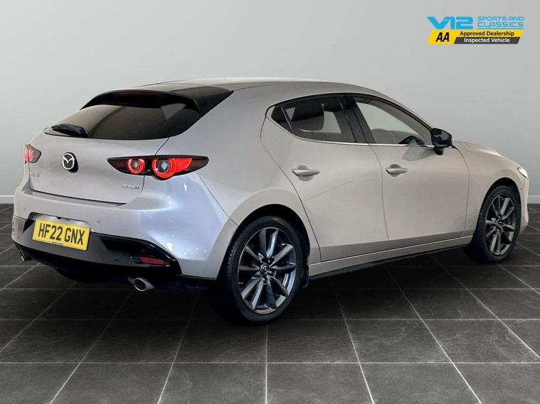 This 2022 Mazda3 e-SKYACTIV-G GT Sport is a superb example of refined driving, boasting a 2.0 litre petrol engine and meeting Euro 6 emissions standards. As a GT Sport trim, it comes equipped with a suite of advanced technology designed to enhance your journey. These notable features include Mazda Radar Cruise Control for effortless highway driving, a Colour Active Driving Display for clear information at a glance, and front and rear parking sensors to aid manoeuvrability. The Adaptive LED headlights provide excellent visibility, while Blind Spot Monitoring with Rear Cross Traffic Alert offers an extra layer of safety. This Mazda3 stands out from its peers with several key advantages. Its acceleration from 0-62mph in 10.4 seconds offers a responsive drive, and it benefits from a low insurance group, making it an economical choice. Furthermore, you'll appreciate the generous boot space, perfect for accommodating luggage or shopping. These elements combine to make the Mazda3 e-SKYACTIV-G GT Sport a practical, safe, and enjoyable vehicle. For peace of mind this vehicle has completed a multi point AA inspection. Competitive finance is also available.We are open 7 days a week and have more than 1500 cars to choose from.All our Euro 4 Petrol and Euro 6 Diesel vehicles meet the ULEZ standard.Vehicle specification can be found below. From time to time vehicles have manufacturer recalls notified. Please read our recall policy on our website for further information..