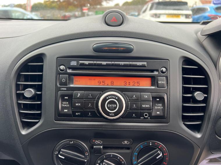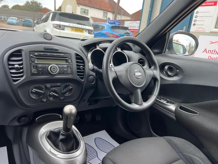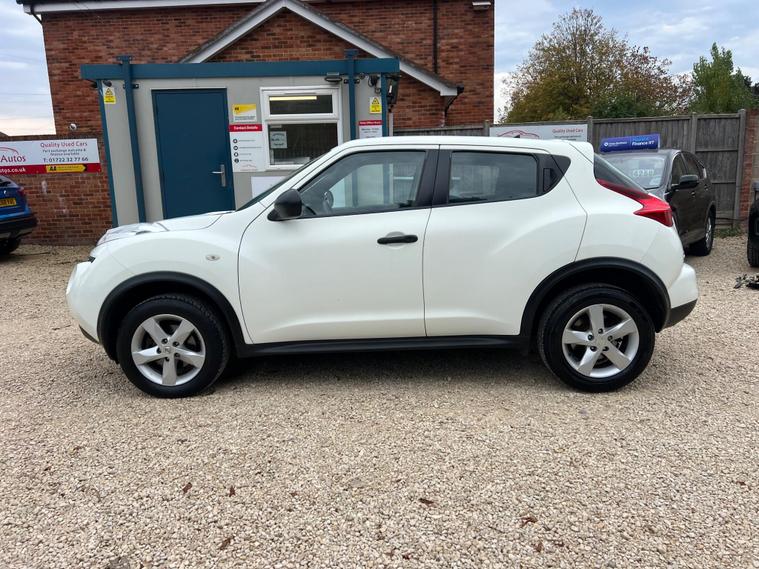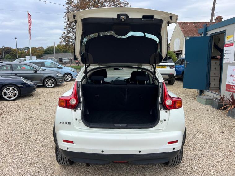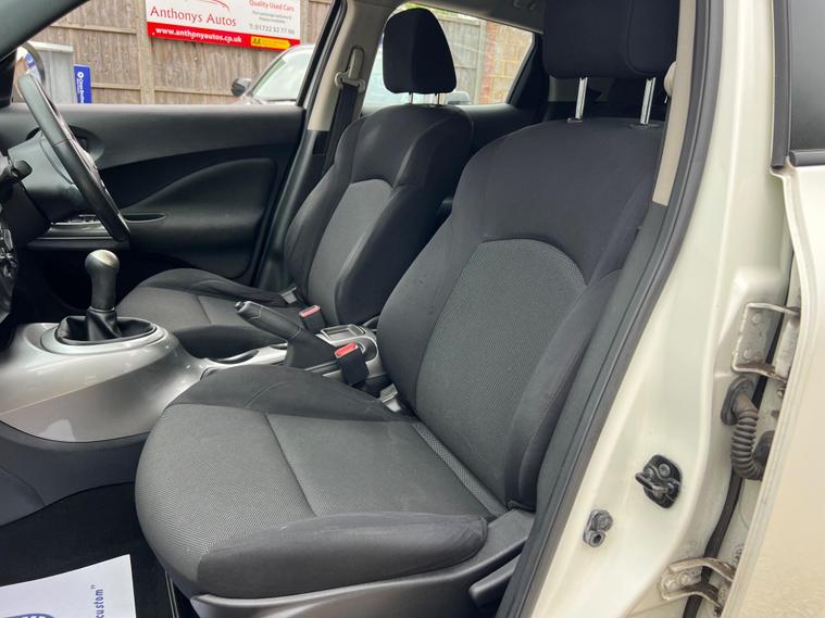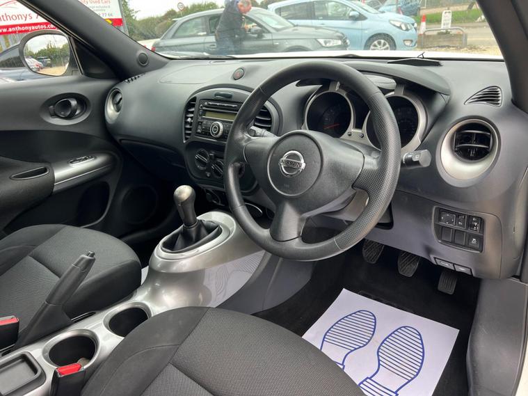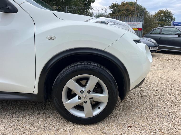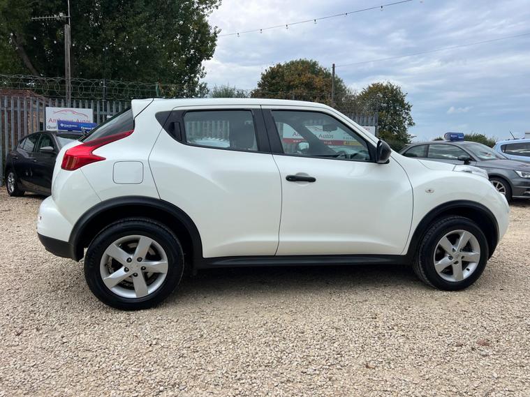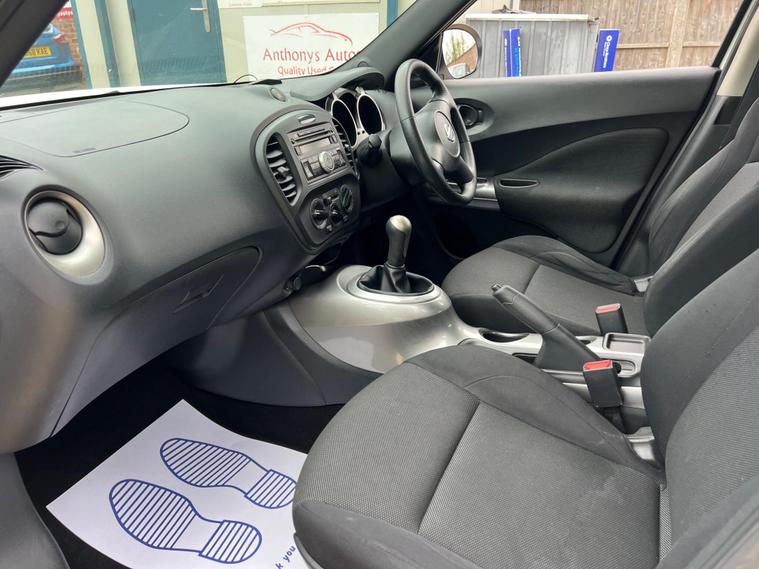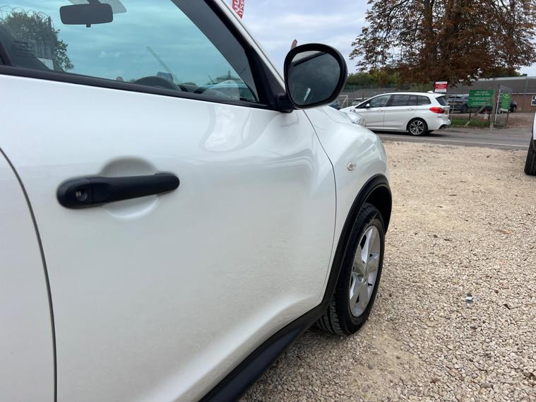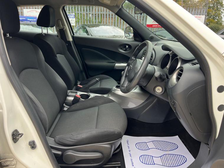 Nissan Juke 1.6 Tekna CVT Euro 5 5dr r in White with a Clean Cloth Interior! Just 78k miles from new. Service History is as follows: 6K, 12K, 20K, 25K, 29K, 38K & 73K and MOT till September 2026. 17'' Alloys, Bluetooth, climate control, Isofix CD player. USB & AUX input and much more. Free 12 AA months roadside breakdown and recovery. Part exchange Welcome. AA warranties for 1, 2 or 3 years available. 3 months warranty included. All Major Cards Accepted. ***FINANCE AVAILABLE***Call today to view and test drive!.