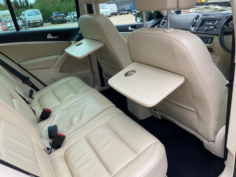 This 2014 Volkswagen Tiguan TDI Match presents an exceptional opportunity with its remarkably low mileage of just 36, 000 miles and a single owner from new. This four wheel drive model is equipped with a capable 2.0 litre diesel engine and boasts a generous towing weight of 2200 kg. Inside, you'll find the comfort of Vienna leather upholstery in Corn Silk, complemented by a spacious panoramic sunroof that can be opened for an airy feel. Navigation is made simple with the RNS 510 DVD touch screen system, complete with integrated voice control, Heated front Seats, Eletric Drivers Seat, Electric And Heated Door Mirrors, Muli Function Steering Wheel, Alloy Wheels And Lots More, The Car Has A Full Service History And Has Just Been Serviced Including Cambelt And Waterpump Change, MOT Until October 2026 And Will Come With A Comprehensive Nationwide Six Months Premium Warranty.Further enhancing this Tiguan's appeal are its advanced parking assistance features, including front and rear sensors and Park Assist, making manoeuvring effortless. The 2 zone electronic climate control ensures a comfortable cabin temperature for all occupants, with automatic air recirculation. Its low insurance group rating is another significant advantage. These factors combined, including the very low mileage and single owner provenance, clearly set this Tiguan apart from other vehicles of its age and type..