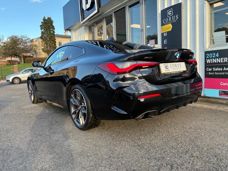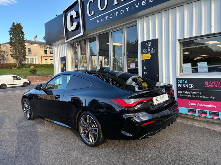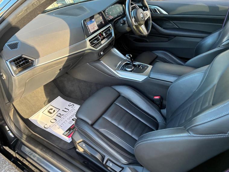 This 2022 BMW 4 Series M440i represents a superb example of its kind, having been cherished by only one owner since new. It boasts a powerful 3.0L Petrol Hybrid engine, paired with a sophisticated Four Wheel Drive system, all while adhering to the Euro 6 emission class. Inside, you'll find the luxurious BMW Individual Extended Merino Leather in Black, complemented by the Comfort Plus Package which includes Keyless Entry, Seats with Memory function, and a Heated Steering Wheel for those colder mornings. The Technology Plus Pack enhances your driving experience with a Premium Branded Sound System and a 360 Degree Camera for effortless parking.Further enhancing its appeal, this M440i is equipped with Parking Assistant Plus, offering front and rear sensors and cameras for complete peace of mind when manoeuvring. The inclusion of PDC Park Distance Control further aids in navigating tight spaces. This vehicle offers a generous boot space, making it practical for everyday use and longer journeys. Additionally, its position in a low insurance group indicates that running costs are kept impressively reasonable compared to similar vehicles, making it an attractive proposition for a wide range of drivers..