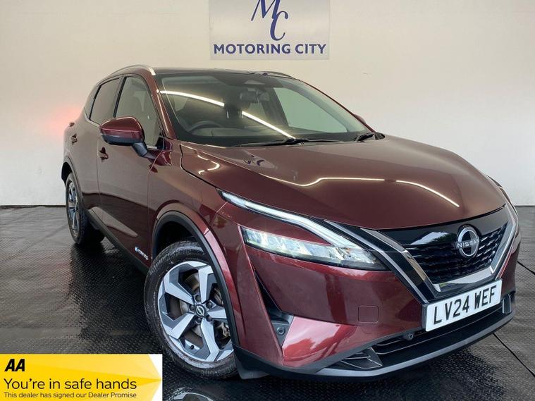 ULEZ COMPLIANT|2 KEYS |PETROL HYBRID | AUTOMATIC | KEYLESS ENTRY | E-POWER | PARKING SENSORS | MOON ROOF | CRUISE CONTROL | VOICE COMMAND | AUTO WIPERS | LANE ASSIST | AUTO HEADLIGHTS | DRIVE MODE OPTION | AUTO HOLD BRAKE | E-PEDAL | EV | APPLE CAR PLAY | ANDROID AUTO | NAVIGATION | BLUETOOTH | REVERSE CAMERA | 360 CAMERA | RADIO AM, FM, DAB | ELECTRIC MIRRORS | WIFI | AC | HPI CLEAR |FREE AA BREAKDOWN COVER WITH ALL PURCHASES|FINANCE & WARRANTY AVAILABLE|DELIVERY AVAILABLE NATIONWIDE | £99 ADMIN FEEThis 2024 Nissan Qashqai h e-POWER N-Connecta boasts exceptionally low mileage for its age, having covered just 8000 miles, and comes with a clear vehicle history check. As a Euro 6 compliant model, it features a 1.5 litre petrol hybrid engine and has had only one owner since new. The N-Connecta trim level includes Automatic Dual Zone Climate Control with a Pollen Filter, Intelligent Blind Spot Intervention, and both Front and Rear Parking Sensors with Parking Assistance. Connectivity is also enhanced with Wired Android Auto. Experience impressive fuel economy with this Qashqai, achieving a notable 54 miles per gallon, and enjoy its low CO2 emissions. The large boot space offers practicality for all your needs, while its acceleration from 0-62mph in 7.9 seconds demonstrates its responsive performance. These highlights indicate that this Nissan Qashqai offers a superior driving experience and greater efficiency compared to other vehicles in its class..