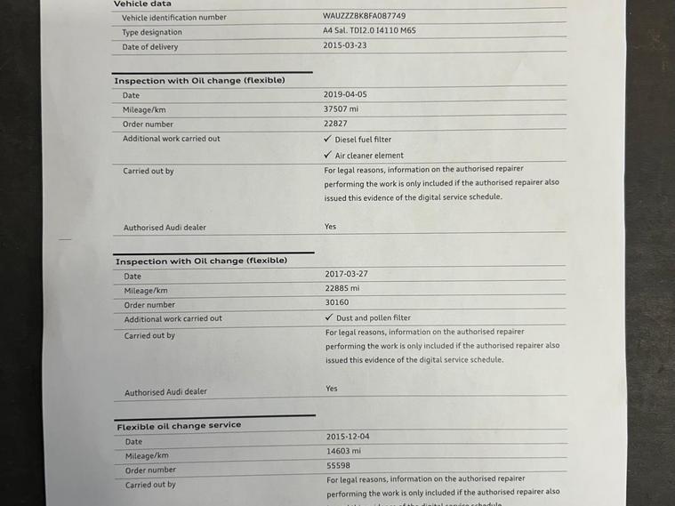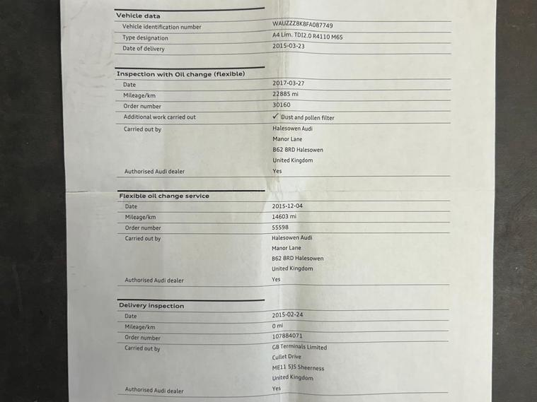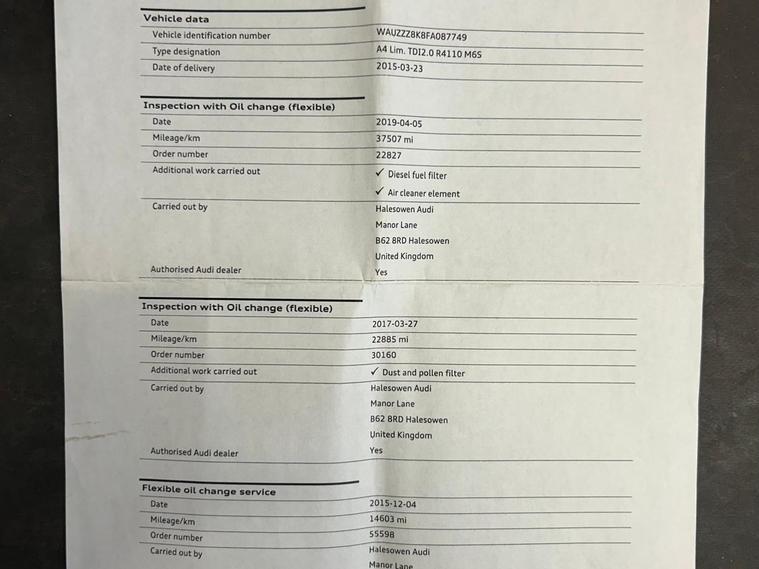 This 2015 Audi A4 TDI S line presents a compelling proposition with its remarkably low mileage of just 78, 961 miles for its age. This well appointed example features a 2.0 litre diesel engine and benefits from S line trim, offering a refined driving experience. Inside, you'll find the convenience of electronic 3 zone climate control and mobile telephone preparation with a Bluetooth interface. The A4 also comes equipped with bi-xenon plus headlights that include an automatic on function activated by a light sensor, along with rear parking sensors to aid manoeuvrability.The highlights of this Audi A4 TDI S line demonstrate its superior value. Achieving an impressive fuel economy of 63 miles per gallon, this vehicle offers excellent efficiency, making it a cost effective choice for your motoring needs. Furthermore, its placement in a low insurance group indicates that running costs are kept to a minimum, further enhancing its appeal. These factors combined, alongside its desirable features and low mileage, position this A4 as an outstanding option compared to other vehicles in its class..