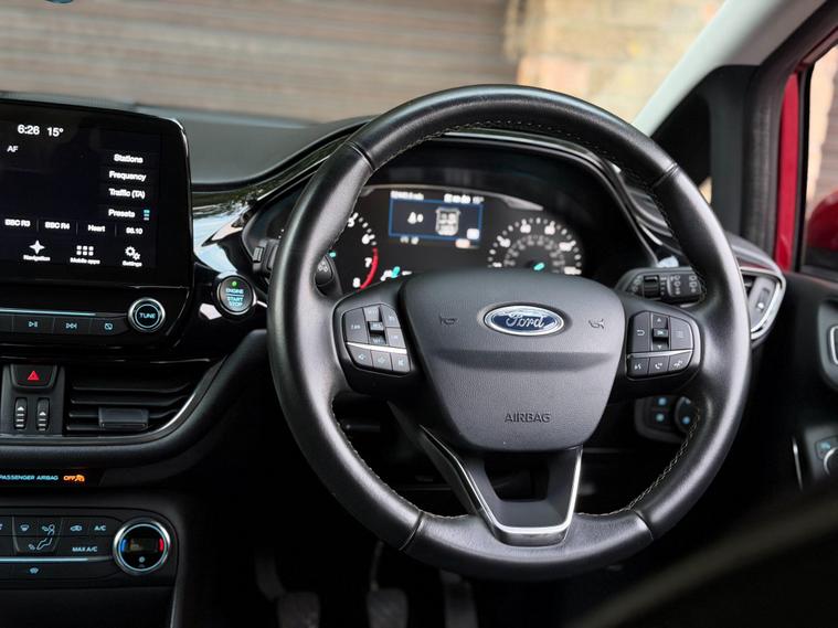 We are delighted to offer this Ford Fiesta 1.0 Titanium, a stylish and economical hatchback that perfectly balances comfort, technology, and everyday practicality. With just 1 previous owner and a comprehensive service history, this Fiesta has been exceptionally well cared for and is ready for its next chapter.Finished in a stunning cherry red with sleek silver alloys and privacy glass, this Fiesta stands out with its modern and sporty appearance. Its compact design makes it perfect for city driving, while still offering excellent comfort and refinement on longer journeys.Inside, the Titanium trim provides a well-equipped cabin featuring cruise control with speed limiter, DAB/FM/AM radio, Apple CarPlay, Android Auto, Bluetooth audio, and handsfree connectivity. Designed for convenience and comfort, it ensures an enjoyable drive every time you step behind the wheel.This Ford Fiesta is an ideal choice for anyone seeking a reliable, economical, and stylish hatchback with great specification and low running costs.At Fitzroy Motor Co, all our vehicles are HPI clear, mechanically inspected, and supplied with a fresh 12-month MOT where required. We also offer nationwide delivery from £149 and finance options from 10.9% APR with £0 deposit available.Part exchange welcome – contact us today to arrange a viewing or test drive. Call us on 01425318542..