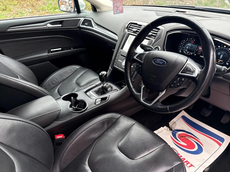 This 2021 Ford Mondeo Titanium Edition presents a superb ownership proposition, having been meticulously maintained by just one owner from new. Powered by an efficient 2.0L Diesel engine meeting Euro 6 emissions standards, this Mondeo offers a refined driving experience. The Titanium Edition trim level ensures a wealth of desirable features, including the comprehensive Driver Assistance Pack, which incorporates Blind Spot Assistance and Adaptive Cruise Control for enhanced safety and comfort. You'll also benefit from rear privacy glass, a Ford SYNC3 DAB Navigation System with seamless Android Auto and Apple CarPlay integration, and rear compartment air conditioning to keep all passengers comfortable. Front and rear parking sensors, along with a rear camera, make manoeuvring effortless.The generous boot space of this Mondeo makes it an ideal choice for families or those who require ample storage. Performance is also a strong point, with an impressive 0-62mph acceleration time of just 9.7 seconds, demonstrating that practicality does not come at the expense of responsiveness. These highlights, such as the advanced driver assistance systems and the spacious interior, clearly set this particular Ford Mondeo apart from others you might find on the market..