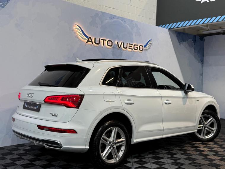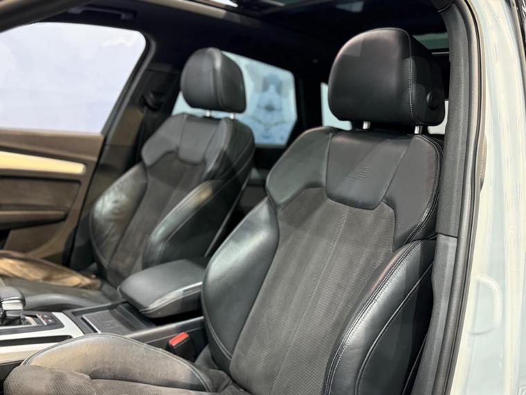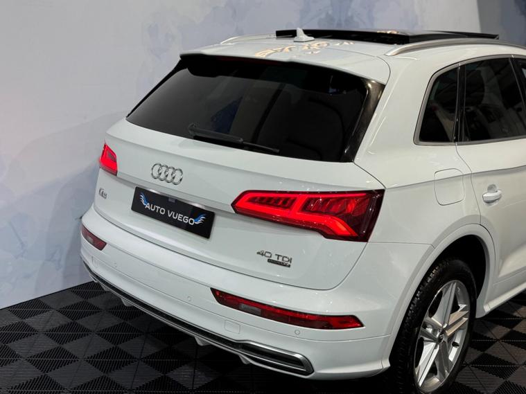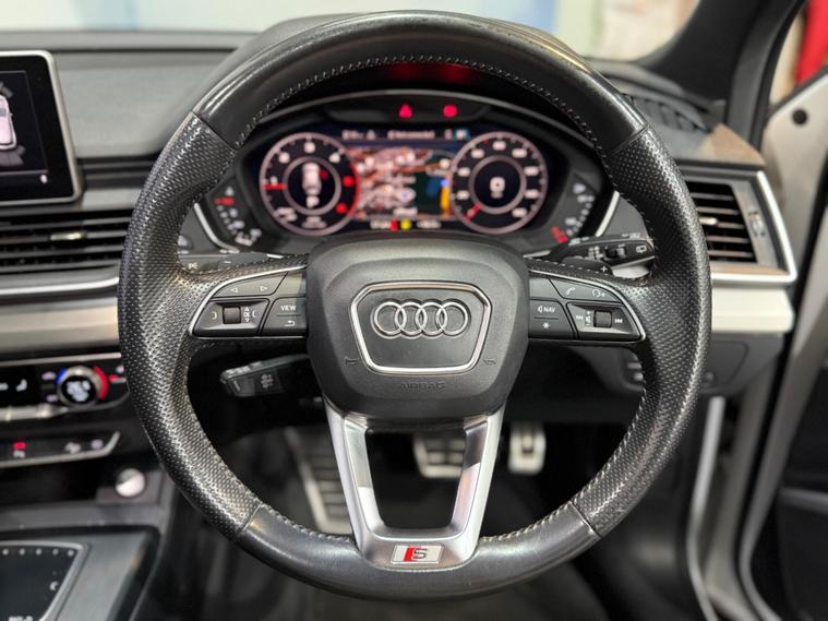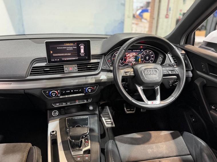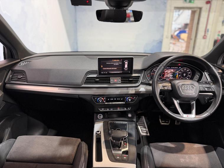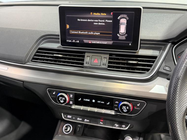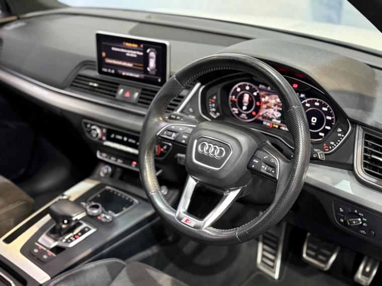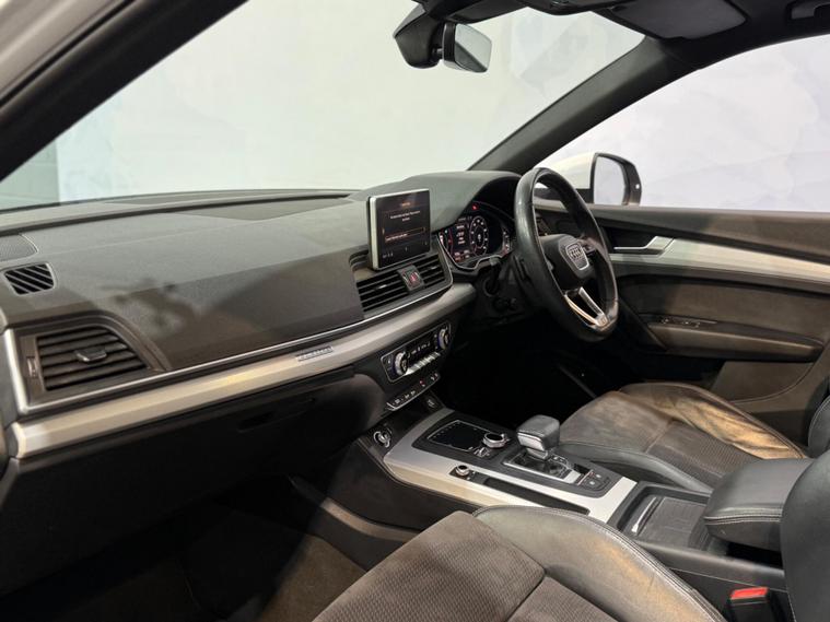 This 2019 Audi Q5 TDI S line offers a superb blend of performance and advanced technology. Powered by a 2.0 litre diesel engine and featuring Audi's renowned four wheel drive system, this Euro 6 compliant model ensures efficient and capable driving. The S line trim enhances its sporty appeal, while the inclusion of a panoramic glass sunroof, a comprehensive technology package with wireless phone charging, and striking Audi Matrix LED headlights with dynamic indicators provide a premium experience. Safety is also paramount, with rear side airbags and Audi Pre Sense Basic offering added peace of mind.The Q5 TDI S line excels in practicality and driving dynamics. Its impressive acceleration, reaching 0 to 62 miles per hour in just 8.1 seconds, demonstrates its responsive power. The large boot space is a significant advantage for families or those needing ample storage. These features, combined with the advanced lighting and safety systems, position this Audi Q5 as a superior choice within its class, offering a refined and capable driving experience for any journey..