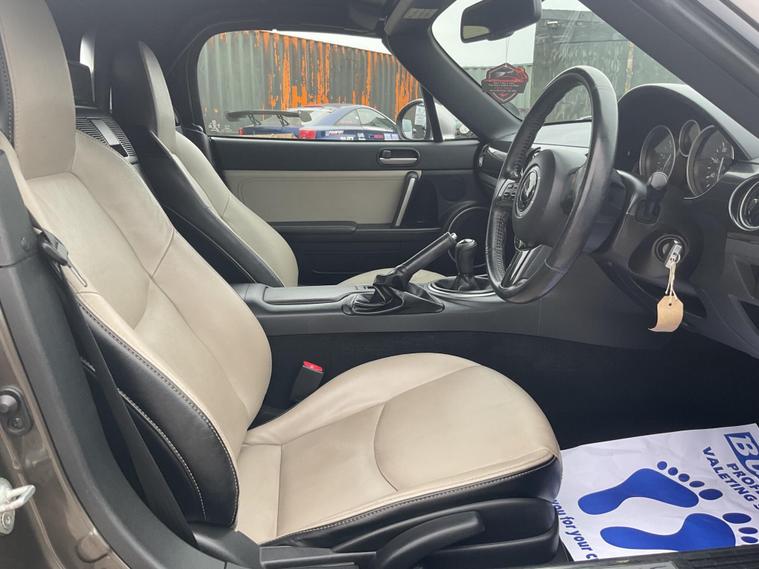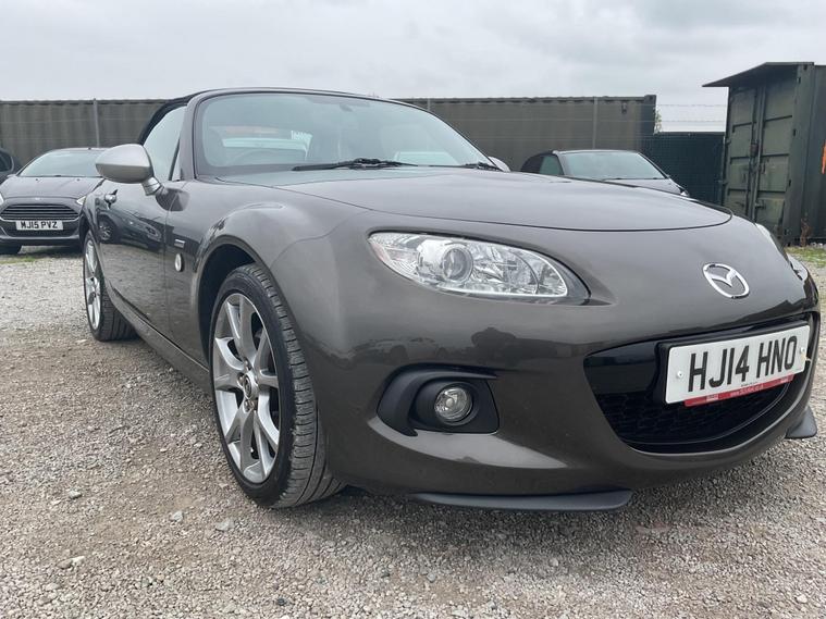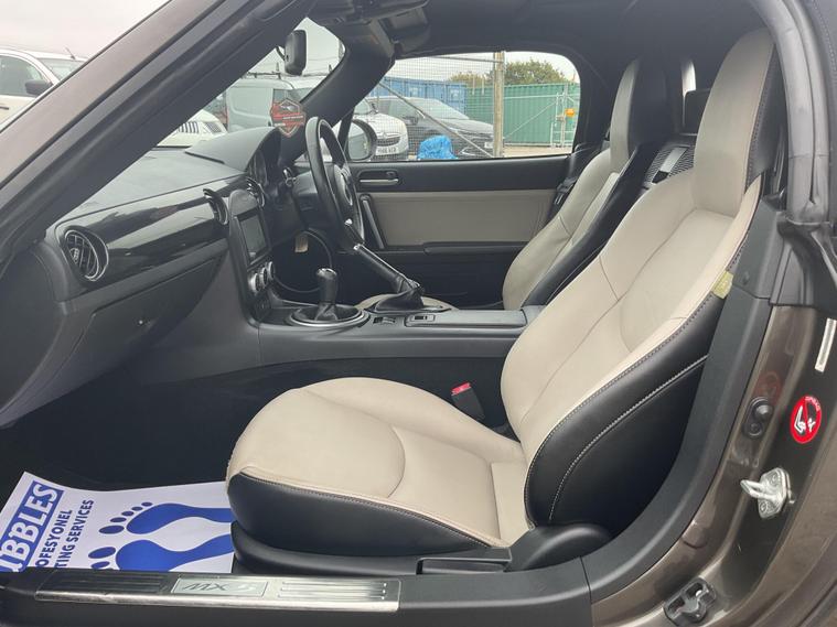 This 2014 Mazda MX-5 i Sport Venture is presented with a clear vehicle history check, offering peace of mind for its next owner. This particular model is equipped with a responsive 1.8 litre petrol engine, delivering an engaging driving experience. Inside, you'll find a comfortable cabin featuring front heated seats, perfect for those cooler days, and climate control air conditioning to maintain your ideal temperature. For entertainment and navigation, it boasts an integrated Bluetooth system and an Alpine navigation system, which also includes a branded sound system for your listening pleasure.The Sport Venture trim level of this MX-5 is designed to enhance your driving enjoyment. Its low insurance group rating indicates that running costs may be more affordable compared to similar vehicles. The combination of the integrated Bluetooth, climate control, heated seats, and the Alpine navigation system highlights the thoughtful specification of this model, making it a well appointed choice for those seeking a stylish and enjoyable convertible..