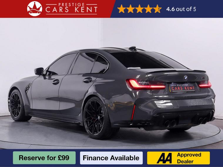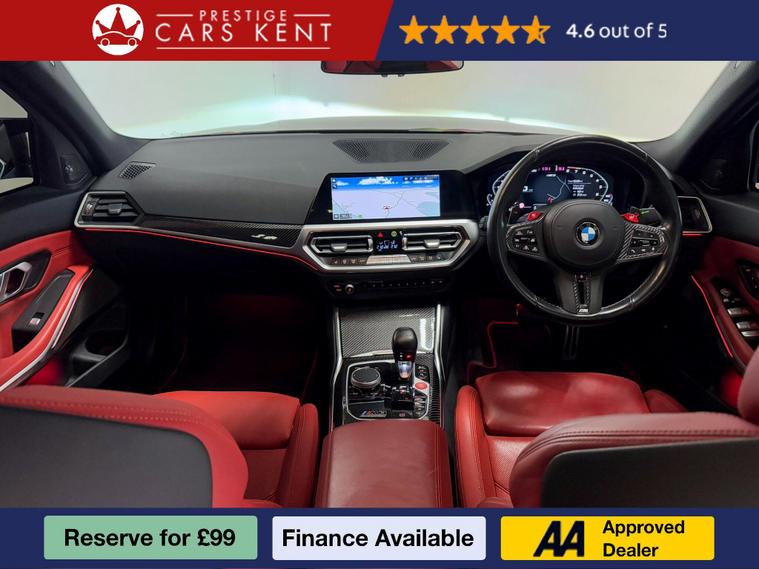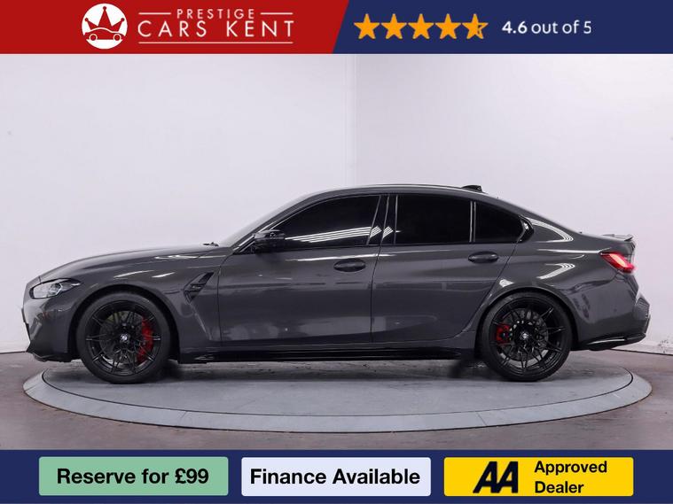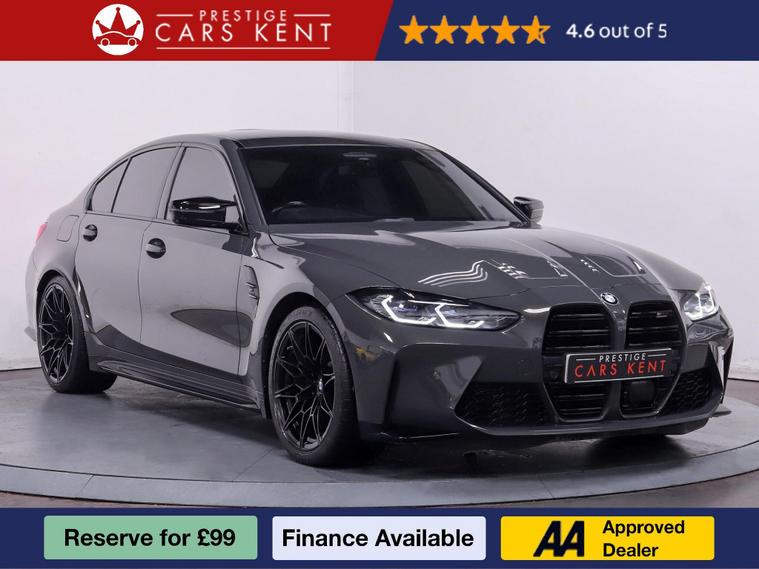 ? BMW M3 Competition Saloon ?The BMW M3 Competition Saloon is a true performance icon, blending motorsport DNA with everyday usability. Powered by a 3.0-litre twin-turbocharged engine, it delivers blistering performance with precision handling, all enhanced by BMW’s advanced M technology. Finished with aggressive styling and a premium interior, this car is engineered to thrill while offering outstanding comfort. With a Full Dealership Service History, it has been meticulously maintained, ensuring both reliability and performance remain at their peak. The M3 Competition is the ultimate sports saloon for drivers who demand style, speed, and sophistication.?Some of the features we love about this car:? Technology Plus Pack – advanced driver assistance, intelligent safety systems, and enhanced digital convenience features.? Visibility Pack – upgraded adaptive lighting ensures crystal-clear vision in all driving conditions.?️ Parking Assistant Plus – intuitive system offering automated parking with 360° camera support.❄️ Comfort Pack with Heated Steering Wheel – elevates driver comfort for year-round usability.? Harman Kardon Surround Sound – delivers an immersive, premium-quality audio experience on every journey.? Condition Based Service – intelligent monitoring for timely maintenance tailored to your driving style.? Why Buy from Prestige Cars Kent?✅ 90-Day Guarantee✅ 175-Point Quality Inspection? Nationwide Delivery Available? Call Now: 01689242905? Prefer email? Submit your enquiry today and we’ll be in touch.⭐ Admin fee applies. Please confirm all specifications, as they are autogenerated ⭐.