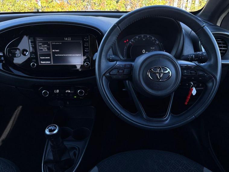 This 2022 Toyota Aygo X VVT-i Edge is a Toyota manufacturer approved vehicle with only one owner and a full service history, having last been serviced on 12th May 2025 at 11067 miles. It features a 1.0L Euro 6 petrol engine and comes with a 12 month warranty for your peace of mind. The MOT is valid until September 2026, ensuring its roadworthiness for the foreseeable future.The Aygo X Edge is equipped with a Parking Pack, including front and rear parking sensors, and a reversing camera to make manoeuvring easier. Stay connected and entertained with smartphone integration, offering both Apple CarPlay and Android Auto, alongside Bluetooth connectivity. Automatic headlights and a fuel economy of 59 mpg highlight how this vehicle is better than other similar vehicles, offering efficiency and convenience. Furthermore, its low insurance group and low CO2 emissions contribute to its overall cost effectiveness..