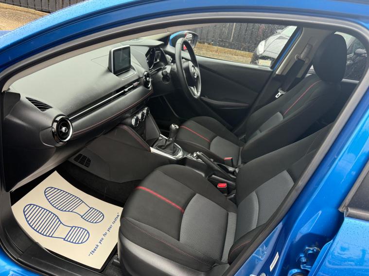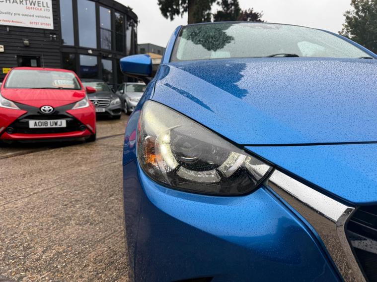 ULEZ compliant. Chartwell's are very pleased to offer this Mazda 2 Sport Nav for sale. We bought this car from a local gentleman. This great spec car is finished in a lovely metallic blue and comes complete with a good service history including a digital service report from Mazda main agent in Bury St Edmunds. The last service was completed on the 02/10/2025 at 87, 206 miles. The current MOT runs until 30/09/2026 which passed with 0 advisories. The car drives superb. With only £35 per year road tax and excellent fuel economy it is a very cheap car to run and own. With the history, low owners and high spec it's a great buy. High spec including the Metallic blue paint, 16-inch alloy wheels, Cloth seats, Sport styling throughout, Privacy Glass, LED running lights, Keyless entry, Keyless start, fog lights, steering wheel controls, Factory Satalitle navigation, DAB Radio - CD Player - USB - AUX, rear heated screen, air-conditioning, rear ISOFIX, electric windows, electric heated mirrors and much more. We have the full book pack with 2 remote locking keys.The car is HPI clear with the printout available. Our cars come with a 3-month/3000 miles warranty as standard unless explicitly sold as a trade sale. We do offer extended warranties through WarrantyWise for 6 months - 2-year terms. For more information call work hours Monday - Saturday 01787902782 or After hours and Sunday call Philip on 01787902782 or Mike on 01787902782. Location Chartwell Suffolk Ltd, Girling Street, Sudbury CO10 1LZ. View all our cars/inventory on dealer's website
