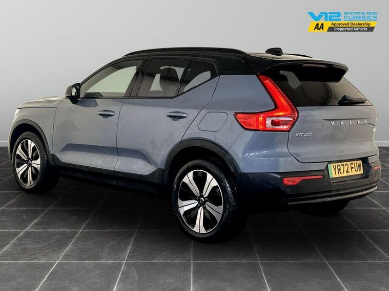 The Volvo XC40 Plus Electric stands out with its impressive practicality, highlighted by its large boot space, offering ample room for all your needs. This vehicle's electric powertrain ensures a smooth and quiet driving experience, while its comprehensive range and efficient charging options make it an excellent choice for both daily commutes and longer journeys. The inclusion of features like the Care Key and speed limiter further enhance its appeal, offering peace of mind and control for the driver.For peace of mind this vehicle has only had 1 registered owner and has completed a multi point AA dealer's website finance is also available.We are open 7 days a week and have more than 1500 cars to choose from.All our Euro 4 Petrol and Euro 6 Diesel vehicles meet the ULEZ standard.Vehicle specification can be found below. From time to time vehicles have manufacturer recalls notified. Please read our recall policy on our website for further information. Please be advised that the advertised electric vehicle (EV) listings may experience battery degradation over time, resulting in reduced performance and range compared to the original specifications. Factors such as usage patterns, environmental conditions, and charging practices can contribute to this degradation. While we strive to provide accurate information, the actual battery health and performance of each EV may vary. Customers are encouraged to conduct thorough research and consider the potential impact of battery degradation before making a purchase decision. We recommend consulting with a qualified technician or conducting a battery health inspection for further assessment..