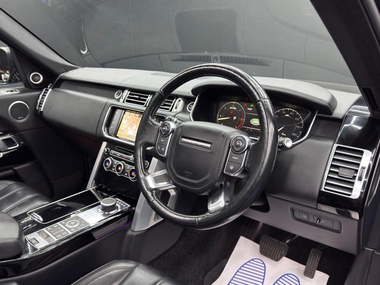 Here at Motor Gurus we are delighted to offer a Land Rover Range Rover 3.0 TD V6 Vogue SE Auto 4WD. This vehicle is in immaculate condition inside and out. This specific vehicle is finished in a GLOSS BLACK and is matched with a BLACK LEATHER interior. This vehicle comes included with: FRONT & REAR PARKING SENSORS, REAR PARKING CAMERA, FRONT AND REAR ELECTRIC SEATS, FRONT MEMORY SEATS, MERIDIAN SOUND SYSTEM, HEATED STEERING WHEEL, CRUISE CONTROL, AIR SUSPENSION, OFF ROAD DRIVING MODES, TWIN CUPHOLDERS, SMOKERS PACK, FRONT HEATED AND VENTED SEATS, REAR HEATED SEATS, 4 ZONE CLIMATE CONTROL, INTERIOR FRIDGE, SAT NAVIGATION, BLUETOOTH AUDIO, TELEPHONE CONNECTIVITY, DAB RADIO, AMBIENT LIGHTING, SLIDING GLASS PANORAMIC ROOF AND MUCH MORE! Our Land Rover Range Rover 3.0 TD V6 Vogue SE Auto 4WD has come to us with FULL SERVICE HISTORY and 2 KEYS! We will also provide this vehicle with a 12 MONTH MOT as well as a FRESH OIL SERVICE before it leaves our premises (OTR)..