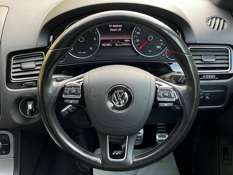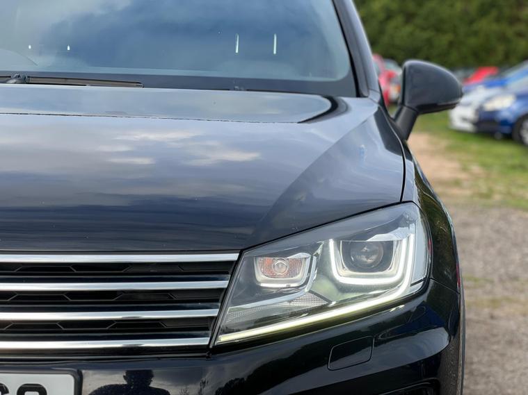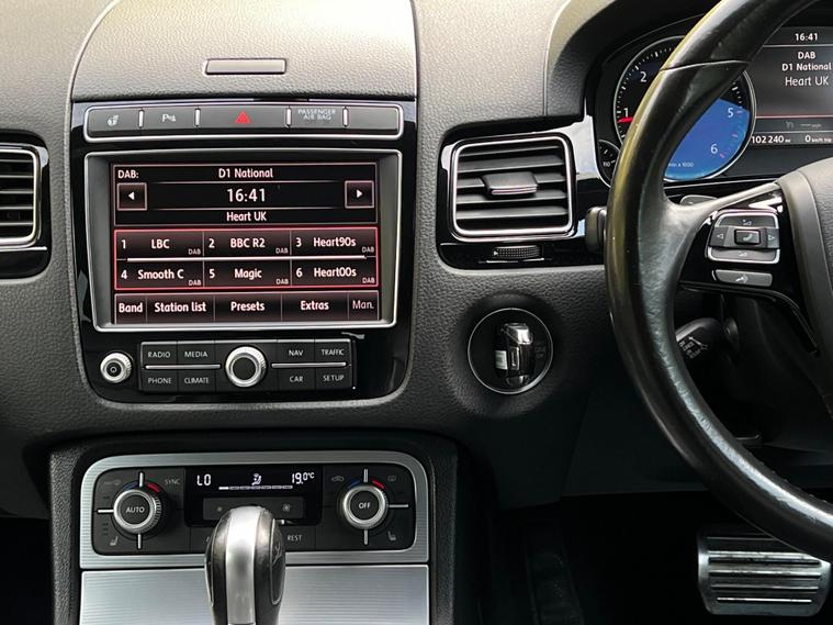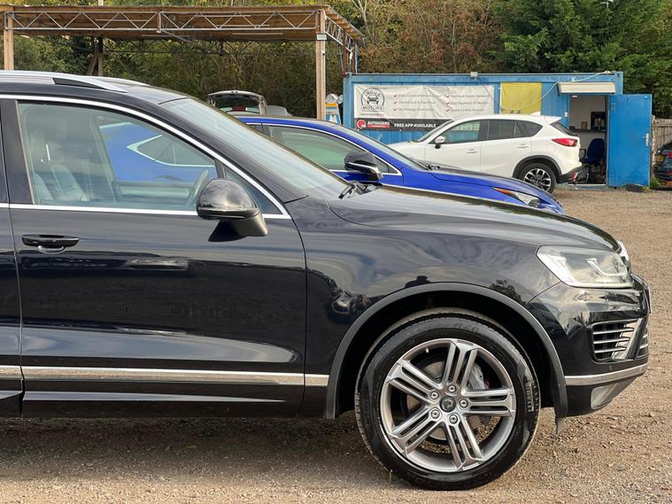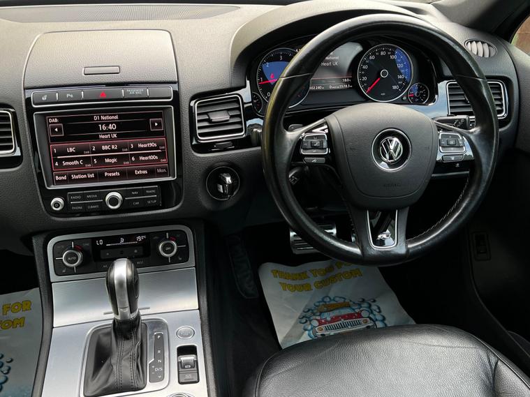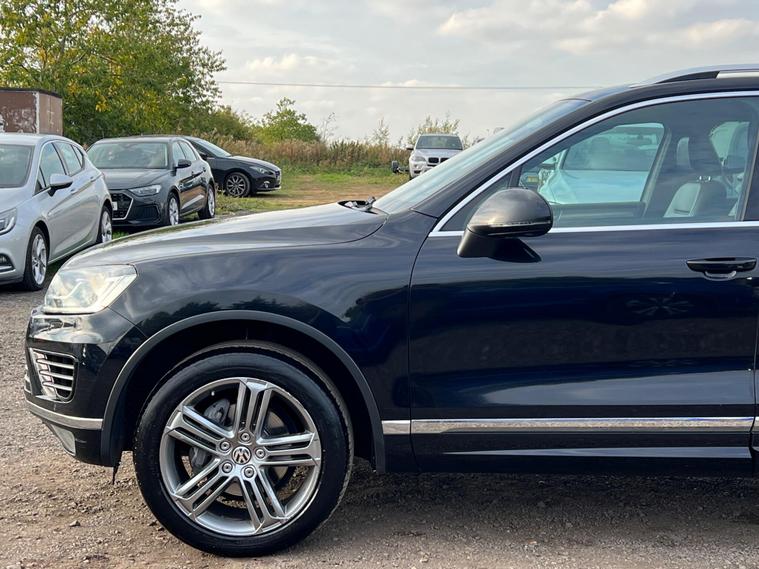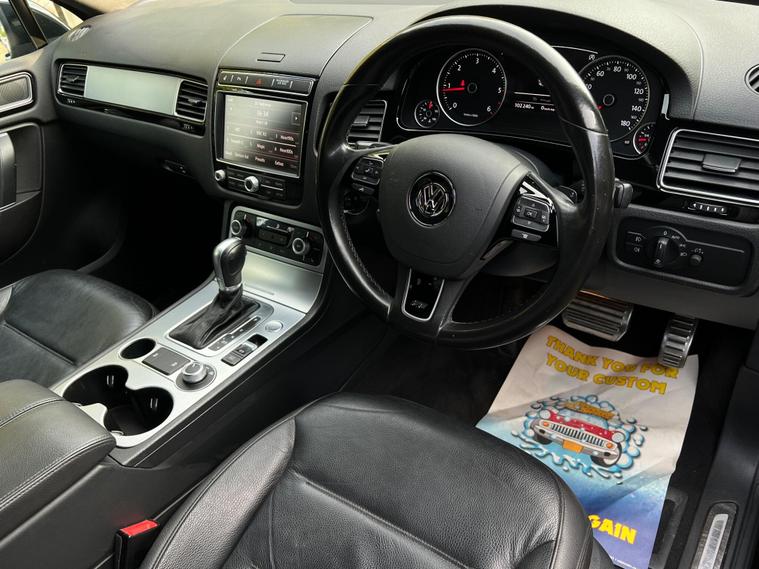 This 2015 Volkswagen Touareg TDI V6 R-Line presents a superb ownership proposition, having had only two previous owners. This capable Four Wheel Drive SUV is powered by a robust 3.0 litre diesel engine, meeting Euro 6 emissions standards. The R-Line trim ensures a premium experience, enhanced by features such as a dusk sensor for automatic headlights with coming and leaving home functions, and a two zone electronic climate control system with automatic air recirculation. Comfort is further elevated by a heated steering wheel and an electric sliding glass panoramic sunroof, while keyless entry provides effortless access.The Touareg TDI V6 R-Line offers impressive performance, accelerating from 0 to 62 miles per hour in just 7.3 seconds, a testament to its powerful engine. Its substantial 3500 kg towing weight makes it an excellent choice for those needing to tow. The generous boot space provides ample room for luggage or equipment, setting it apart from many vehicles in its class. Furthermore, its placement in a low insurance group contributes to lower running costs, making this a more economical option compared to similar vehicles..