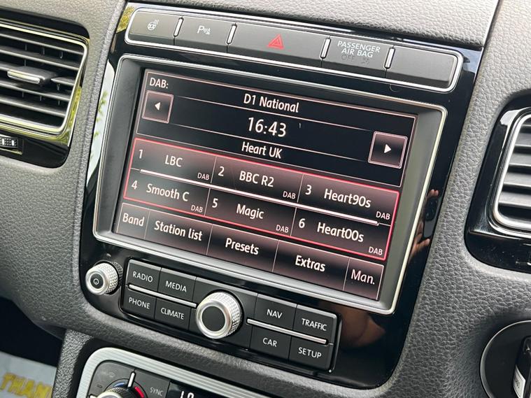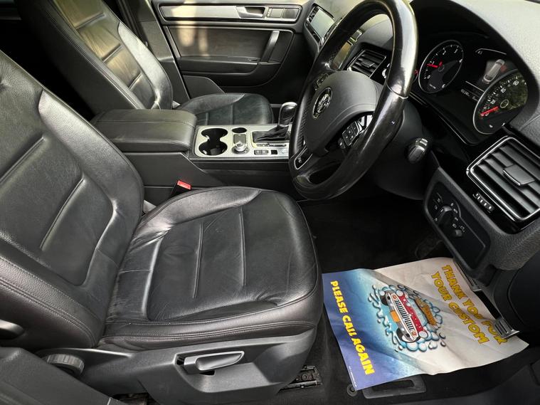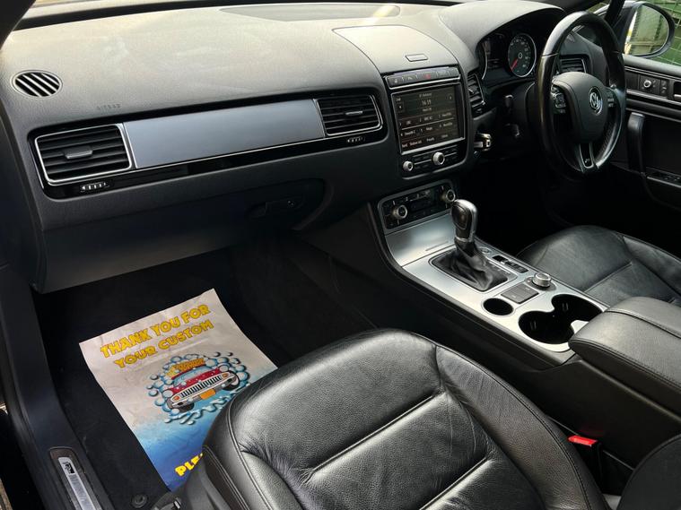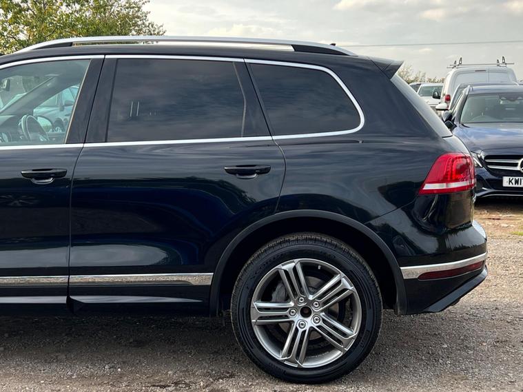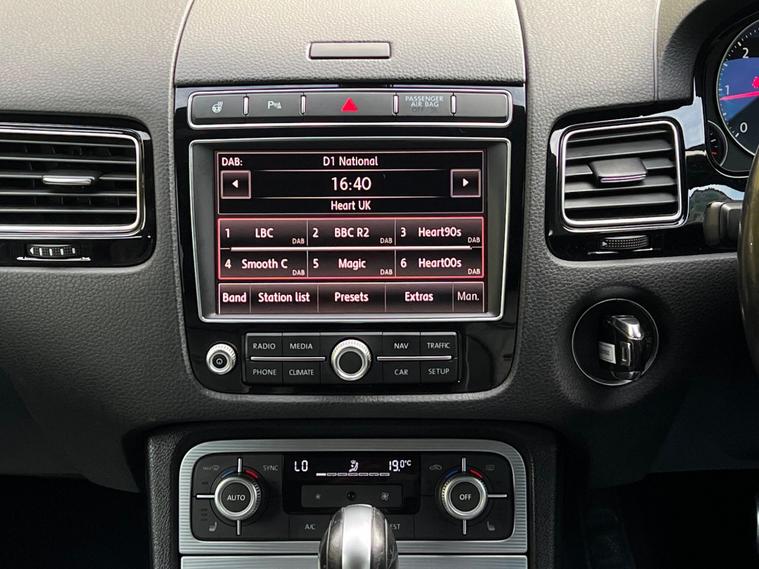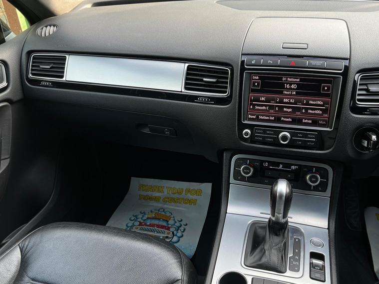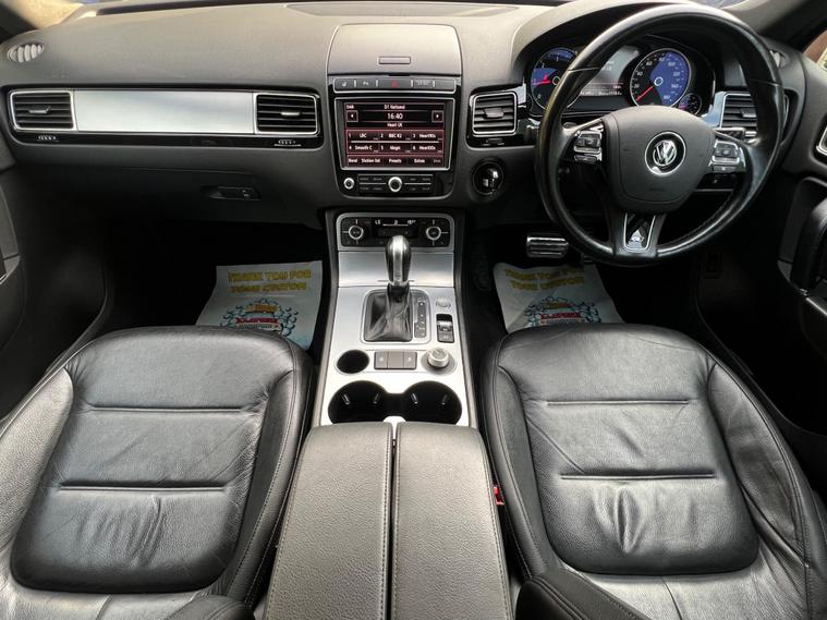 This 2015 Volkswagen Touareg TDI V6 R-Line presents a superb ownership proposition, having had only two previous owners. This capable Four Wheel Drive SUV is powered by a robust 3.0 litre diesel engine, meeting Euro 6 emissions standards. The R-Line trim ensures a premium experience, enhanced by features such as a dusk sensor for automatic headlights with coming and leaving home functions, and a two zone electronic climate control system with automatic air recirculation. Comfort is further elevated by a heated steering wheel and an electric sliding glass panoramic sunroof, while keyless entry provides effortless access.The Touareg TDI V6 R-Line offers impressive performance, accelerating from 0 to 62 miles per hour in just 7.3 seconds, a testament to its powerful engine. Its substantial 3500 kg towing weight makes it an excellent choice for those needing to tow. The generous boot space provides ample room for luggage or equipment, setting it apart from many vehicles in its class. Furthermore, its placement in a low insurance group contributes to lower running costs, making this a more economical option compared to similar vehicles..