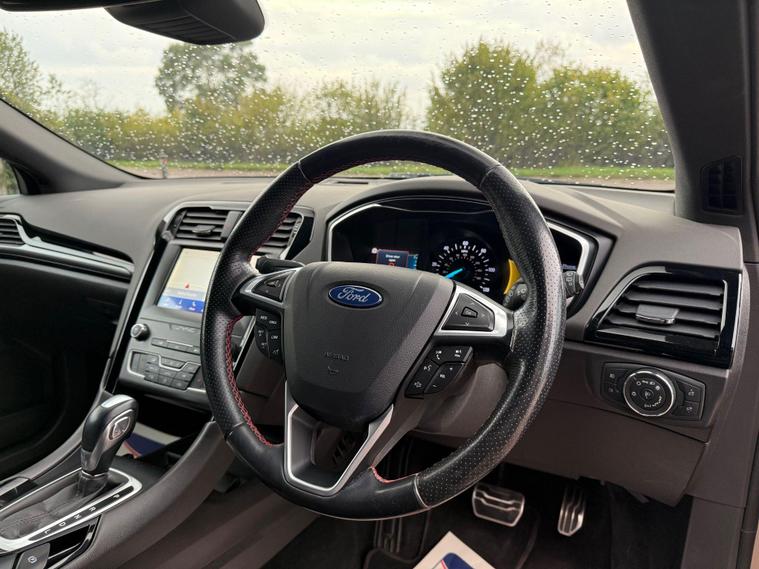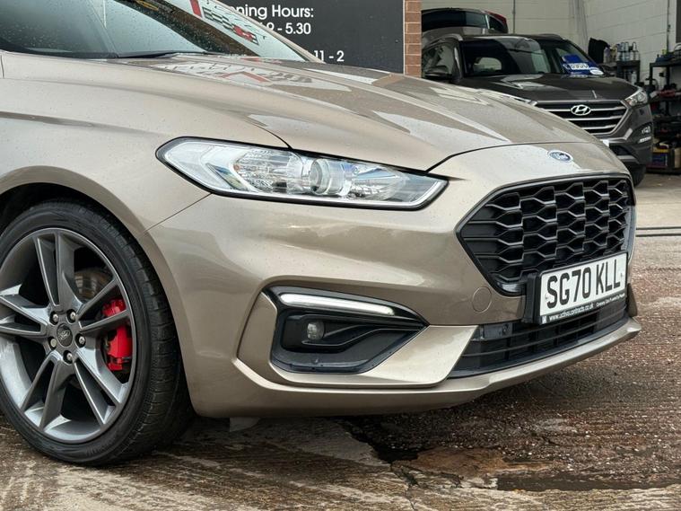This 1 owner 2020 Ford Mondeo TiVCT ST-Line Edition boasts a full Ford dealership service history, ensuring its excellent provenance. This Euro 6 compliant model features a 2.0L petrol hybrid engine and comes with a 6 month warranty for your peace of mind. A new MOT to September 2026, and it has had only one owner since new. Notable features include a Winter Pack with heated seats, keyless entry and start, and front and rear parking sensors. Comprehensive media satnav DAB radio system USB & Bluetooth. Cruise control, climate control and electric seats on this top of the range car. A fabulous quiet driving car with good performance and economy. Very well maintained ex contract one owner and Ford servicing. We sell with 6 Months Warranty Wise Gold Warranty. 2 x keys & all handbooks on this smoker free car. 12 Months AA Breakdown Membership included. AA Driveaway 5 Day Insurance available - Only £44.99 NEED FINANCE? No Problem - SAF Registered. Simply click 'Apply for finance' on our website dealer's website We are a FCA registered dealership. Prime or subprime finance. Excellent finance rates available. Delivery to your home available - please ask.The Mondeo ST-Line Edition offers a low insurance group, making it an economical choice. You'll also appreciate the generous boot space, perfect for luggage or shopping. The variable heated driver and passenger seats, along with the 4-way manual adjustment for the passenger seat, further enhance comfort. These elements combined indicate that this Mondeo offers a superior experience compared to other vehicles in its class..