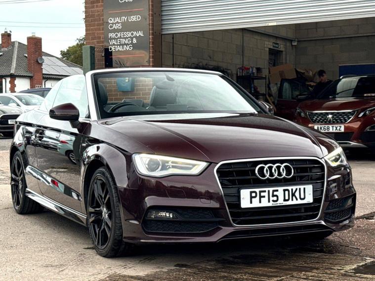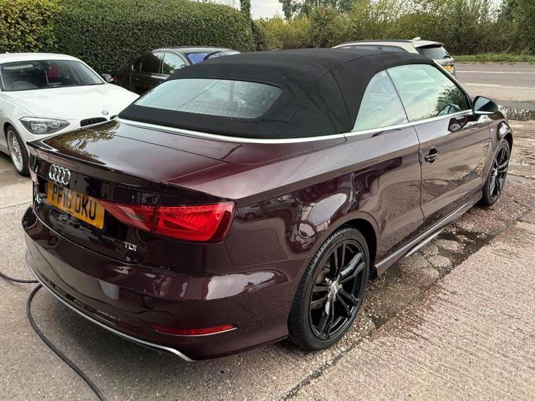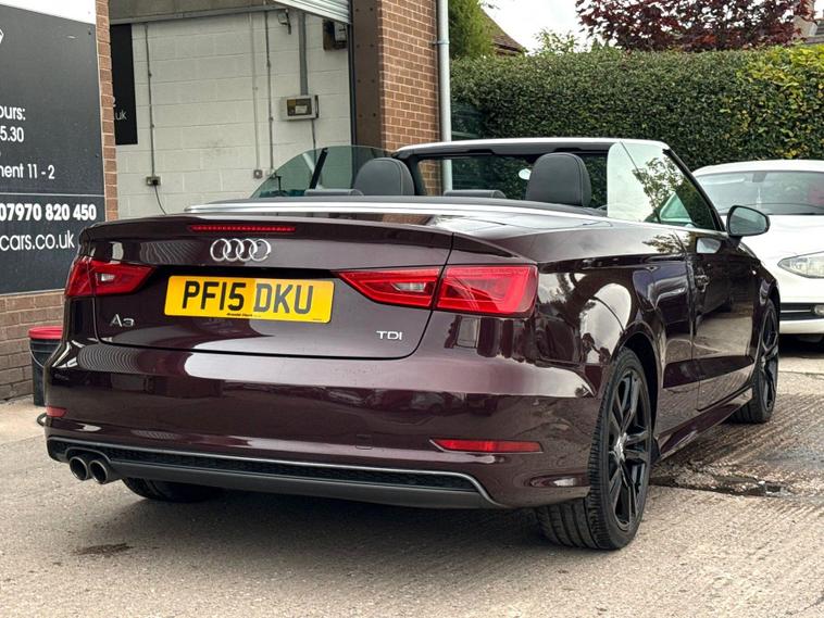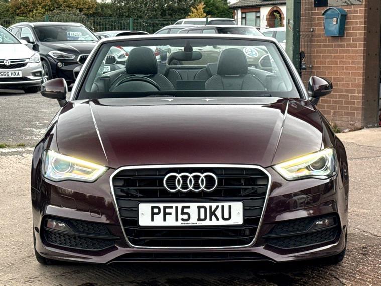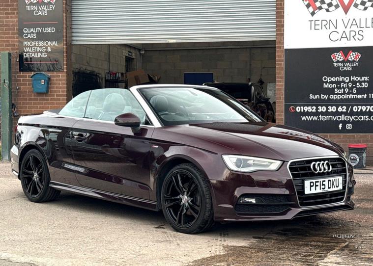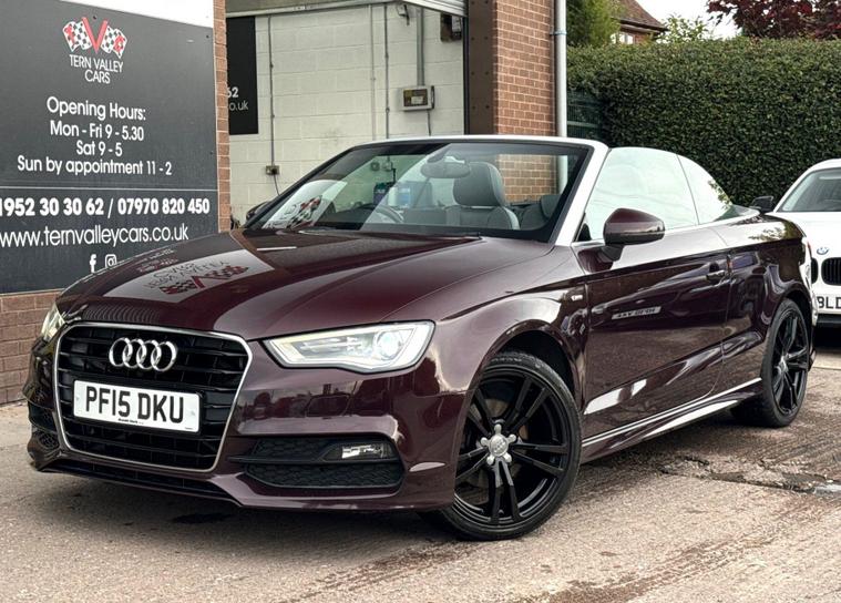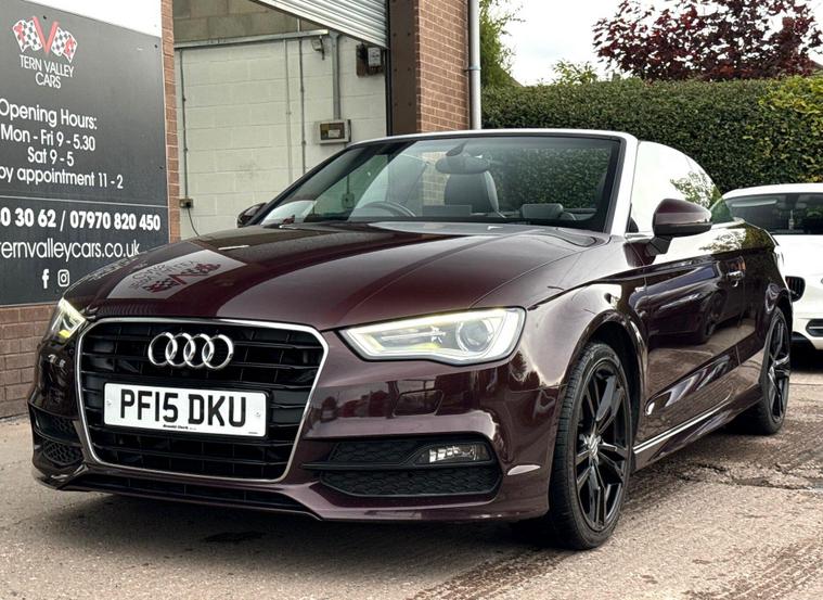 Only £20 Tax on this gorgeous looking 2015 Audi A3 Cabriolet TDI S line is finished in gleaming Shiraz Red Metallic & boasts a full service history, with its last service completed on 2nd October 2025 at 80, 037 miles, ensuring excellent provenance. This stylish convertible features a 2.0 litre diesel engine and is Euro 6 compliant, contributing to its impressive fuel economy of 66 mpg. Inside, you'll find comfortable heated front seats, a dual-zone electronic climate control system for personalised comfort, and a Bluetooth interface for seamless mobile phone connectivity. For convenience and safety, it includes rear parking sensors and Bi-Xenon Plus headlights. Good specification on this classy looking & fabulous to drive convertible. We sell with 12 Months AA Breakdown Membership included. AA Driveaway 5 Day Insurance available - Only £44.99 NEED FINANCE? No Problem - SAF Registered. Simply click 'Apply for finance' on our website dealer's website We are a FCA registered dealership. Prime or subprime finance. Excellent finance rates starting from as low as 11.1% APR (Subject to status and terms and conditions). For any further information and details to view please contact David, who has over 50 years personal Motor Trade experience. 6 Months Warrantywise Gold Warranty. Just arrived and many more images when valeted. Delivery to your door is available, please ask for a quote.The Audi A3 Cabriolet TDI S line offers several highlights that set it apart. Its low CO2 emissions and low insurance group indicate it is an economical choice for everyday driving. The large boot space provides practicality for a convertible, making it suitable for various needs. With MOT valid until May 2026 and a 6 month warranty included, this vehicle offers peace of mind for its next owner..