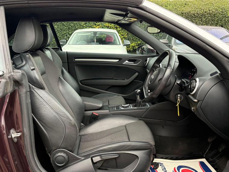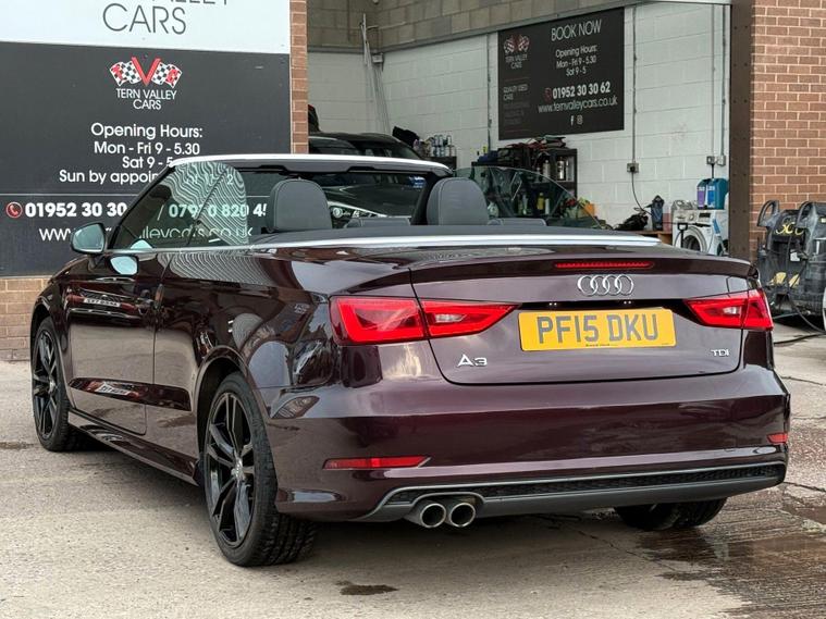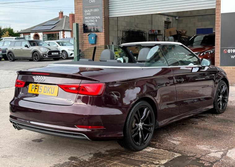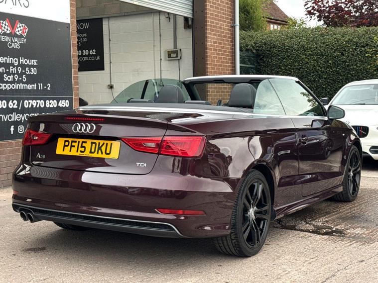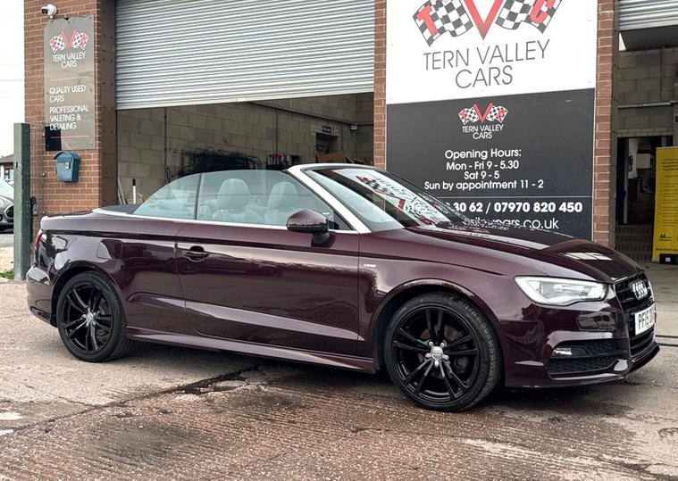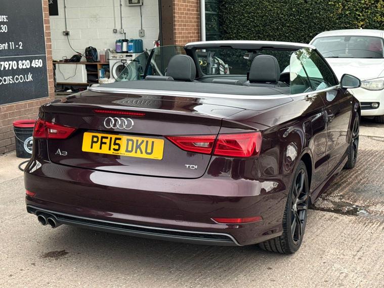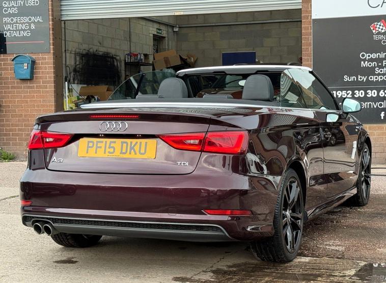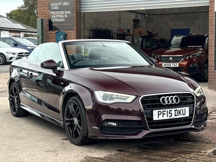 Only £20 Tax on this gorgeous looking 2015 Audi A3 Cabriolet TDI S line is finished in gleaming Shiraz Red Metallic & boasts a full service history, with its last service completed on 2nd October 2025 at 80, 037 miles, ensuring excellent provenance. This stylish convertible features a 2.0 litre diesel engine and is Euro 6 compliant, contributing to its impressive fuel economy of 66 mpg. Inside, you'll find comfortable heated front seats, a dual-zone electronic climate control system for personalised comfort, and a Bluetooth interface for seamless mobile phone connectivity. For convenience and safety, it includes rear parking sensors and Bi-Xenon Plus headlights. Good specification on this classy looking & fabulous to drive convertible. We sell with 12 Months AA Breakdown Membership included. AA Driveaway 5 Day Insurance available - Only £44.99 NEED FINANCE? No Problem - SAF Registered. Simply click 'Apply for finance' on our website dealer's website We are a FCA registered dealership. Prime or subprime finance. Excellent finance rates starting from as low as 11.1% APR (Subject to status and terms and conditions). For any further information and details to view please contact David, who has over 50 years personal Motor Trade experience. 6 Months Warrantywise Gold Warranty. Just arrived and many more images when valeted. Delivery to your door is available, please ask for a quote.The Audi A3 Cabriolet TDI S line offers several highlights that set it apart. Its low CO2 emissions and low insurance group indicate it is an economical choice for everyday driving. The large boot space provides practicality for a convertible, making it suitable for various needs. With MOT valid until May 2026 and a 6 month warranty included, this vehicle offers peace of mind for its next owner..