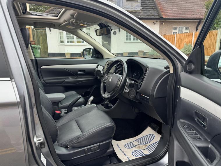Mitsubishi Outlander 2.0h 12kWh GX4hs CVT 4WD Euro 5 (s/s) 5drReg: PE64AKX | Year: 2014 (64) | Mileage: 77, 686 miles | Fuel: Petrol Plug-in Hybrid | Transmission: Automatic | Colour: Grey | Owners: 1 | ULEZ Compliant ✅This 2014 Mitsubishi Outlander GX4hs Plug-in Hybrid Electric Vehicle (PHEV) combines eco-friendly hybrid technology with family practicality and premium comfort. Finished in stylish grey and boasting just one owner from new, it’s a fantastic opportunity to own a well-maintained SUV.Powered by a 2.0 petrol engine paired with a 12kWh plug-in hybrid system, the Outlander offers excellent fuel economy, low running costs, and smooth power delivery. The CVT automatic gearbox and 4WD system make it equally at home in the city or on longer journeys.Key Features:Full leather interior with heated seatsPanoramic glass roofSatellite navigation system360° parking camera + front & rear sensorsRockford Fosgate premium sound systemAdaptive cruise control & lane departure warningKeyless entry and push-button startElectric tailgateDual-zone climate controlWith 77, 686 miles and a comprehensive service history, this car has been carefully looked after.✅ ULEZ compliant✅ Comes with 3 months warranty for peace of mind✅ HPI clear? A spacious, reliable and high-spec SUV offering modern technology, hybrid efficiency, and comfort for the whole family..