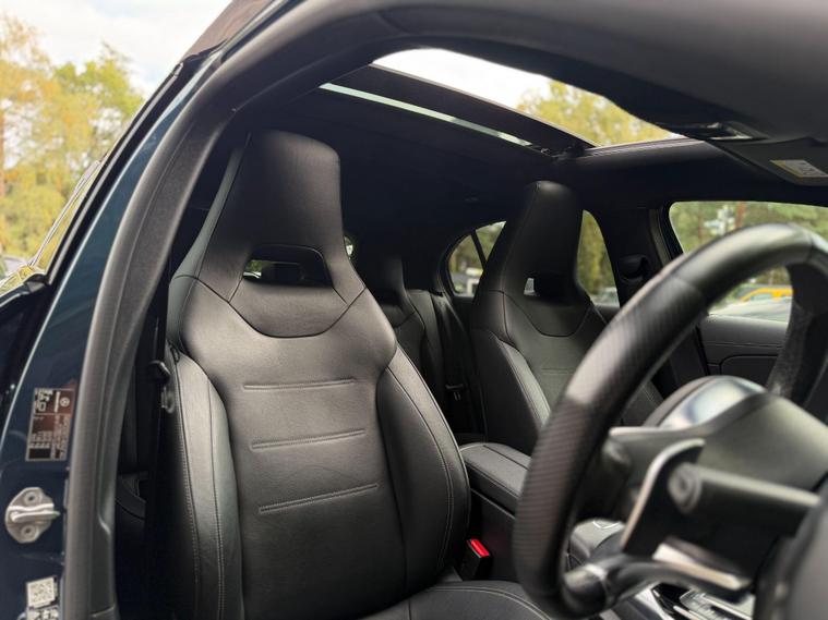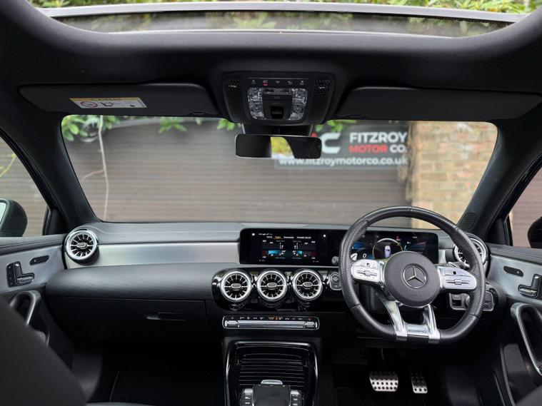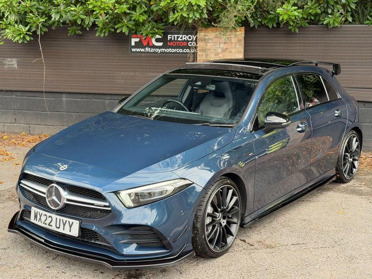 We are delighted to offer this stunning Mercedes-Benz AMG A35 4MATIC Premium Plus, a truly exceptional example finished in a striking metallic blue and enhanced with the full AMG Styling Package and Maxton Design Kit, including a front splitter, rear diffuser, and side skirts — giving it a powerful and aggressive stance. With 1 previous owner, 2 keys, and a full Mercedes-Benz service history, this A35 has been meticulously maintained and is presented in superb condition throughout.On the exterior, the car features adaptive LED headlights, privacy glass, and diamond-cut satin black AMG alloys with four matching tyres. A professionally fitted Cobra exhaust system, installed by Cobra-approved dealers, adds a deep, refined tone and comes with a lifetime warranty — a true enthusiast’s touch. Every detail, from the sharp AMG lines to the gloss black trim, reflects the car’s performance pedigree and style.Inside, the cabin delivers the perfect mix of luxury and sportiness. It features black leather AMG sports seats with electric adjustment, memory function, and heating for both driver and passenger. The flat-bottom AMG steering wheel, digital widescreen cockpit, and panoramic glass roof with tilt, slide, and electric shade elevate the driving experience. You’ll also find adaptive dampers and multiple drive modes that let you tailor the car’s dynamics to your preference.Technology and comfort are at the forefront with Apple CarPlay, Android Auto, Bluetooth audio, handsfree connectivity, DAB/FM/AM radio, and a reversing camera for added convenience. Cruise control, folding mirrors, and high-quality interior materials complete this beautifully finished performance hatchback.This A35 Premium Plus delivers the perfect blend of power, precision, and refinement — a car that looks incredible, sounds phenomenal, and drives like a true AMG.At Fitzroy Motor Co, all our vehicles are HPI clear, mechanically inspected, and supplied with a fresh 12-month MOT where required. We also offer nationwide delivery from £149 and finance options from 10.9% APR with £0 deposit availabl.