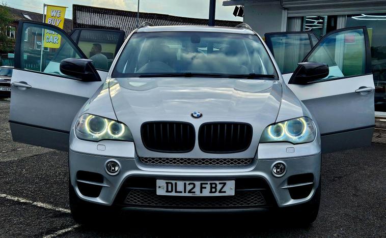 This 2012 BMW X5 40d SE 7 seater presents a compelling proposition with its remarkably low mileage for its age, 2 Keys, good service history, long MOT till 23 july 2026 without any advisory, This impressive four wheel drive SUV boasts a powerful 3.0 litre diesel engine, offering a brisk 0-62mph acceleration in just 6.6 seconds. The SE trim level ensures a well appointed interior, featuring electric front comfort seats with memory function and heated seats for an enhanced driving experience. Practicality is also a key consideration, with ample boot space and the added convenience of third row seating, making it a versatile choice for families or those needing extra capacity, carbon fiber stylish folding side mirrors.Further enhancing its appeal, this X5 is equipped with a reversing assist camera complete with top view, front and rear parking sensors with display simplifying parking manoeuvres. You'll also benefit from enhanced Bluetooth telephone functionality, keeping you connected on the go. The striking 20 inch light Y spoke 214 alloy wheels add a touch of style, while its substantial 3500 kg towing weight capability demonstrates its robust nature. These features collectively highlight how this particular BMW X5 40d SE offers a superior combination of performance, comfort, and utility compared to other vehicles in its class.AS PART OF THE AA GROUP WE OFFER 12 MONTHS FREE AA BREAKDOWN COVER WITH EVERY CAR SOLD & 5 DAYS DRIVEAWAY INSURANCE AVAILABLE (T&C's apply).ALL DEBIT AND CREDIT CARD PAYMENTS ACCEPTED. PART EXCHANGE ALWAYS WELCOME. EVENING VIEWINGS AVAILABLE ON REQUEST. OPEN 7 DAYS A WEEK, VISIT dealer's website WITH OVER 100 CARS IN STOCK., Please Visit Our Website For More Automatic Cars, Home Delivery Available For All over The Uk..