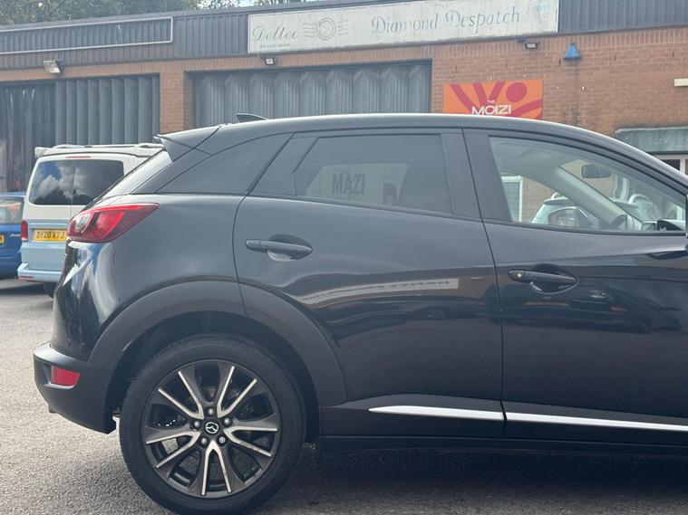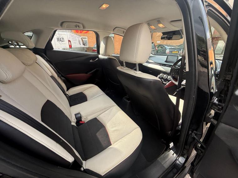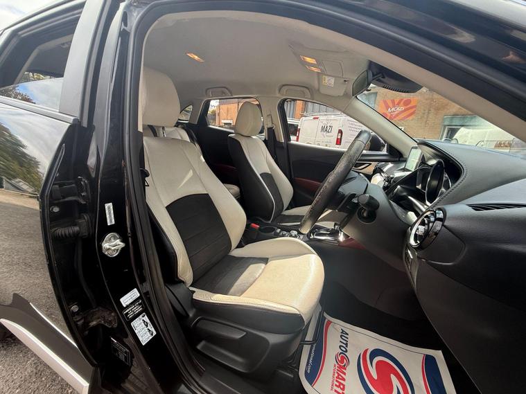 Discover this 2016 Mazda CX-3 SKYACTIV-D Sport Nav, a stylish and capable compact SUV. This four wheel drive model is equipped with a 1.5 litre diesel engine that meets Euro 6 emissions standards. Inside, you'll find a host of desirable features including heated front seats for those colder mornings, smart keyless entry for effortless access, and dusk sensing automatic headlights that illuminate your path. The Sport Nav trim also boasts a reversing camera to aid with parking and steering wheel paddle shifts for a more engaging driving experience.This Mazda CX-3 offers excellent running costs, achieving an impressive fuel economy of 54 miles per gallon, which is better than many similar vehicles. Furthermore, its low insurance group rating indicates that ownership costs are kept to a minimum, making it an economical choice. This combination of efficiency, advanced features, and the assurance of four wheel drive capability makes this CX-3 a compelling option for those seeking a practical and enjoyable car..