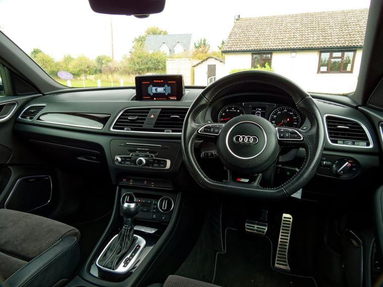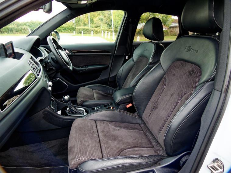 The Essex Car Group Ltd are delighted to offer this Stunning Audi Q3 1.4 TFSI CoD Black Edition S Tronic (ULEZ EURO 6) in Glacier White with Half Black Leather/Alcantara Interior, Spec includes 19'' Gloss black V Spoke alloys, Satellite Navigation System - SD Card Based, BOSE Surround Sound System, Bluetooth Interface, Flat-Bottomed 3-Spoke Perforated Leather-Trimmed Multifunction Steering Wheel-Contrast Stitching with Paddles, Cruise Control, Voice Control System, Black Styling Pack with Black Roof Rails, Full Body-colour Paint Finish with Front and Rear Bumpers - Wheel Arch Trims and Lower Door Trims in Gloss Black, AMI - Audi Music Interface, Audi Parking System Plus, LED Interior Light Package, Privacy Glass, 4-Way Electric Lumbar Support for Front Seats, Heated front seats, Upgraded warranty available. Finance available. Part ex-welcome. Please check spec with a member of staff as Autotrader spec can be incorrect. Please call to arrange a viewing 01277517184 or 01277517184 (out of hours).