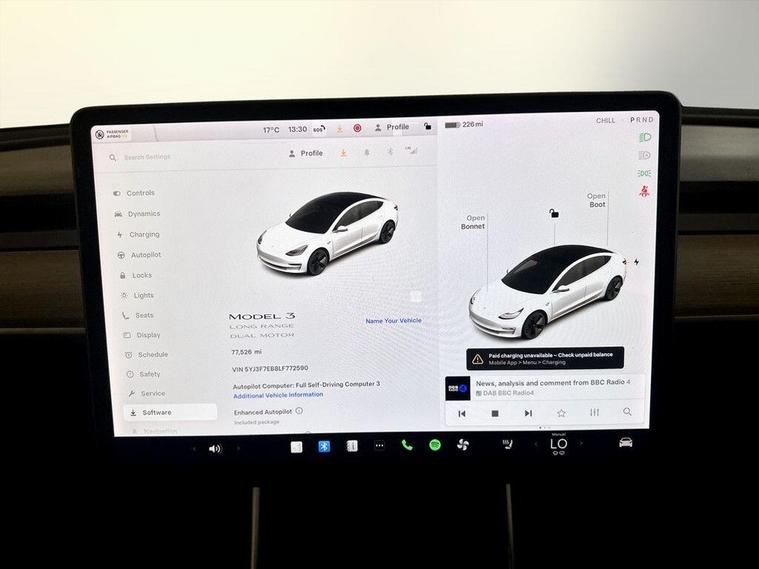 This Model 3 comes equipped with convenient features such as Bluetooth connectivity, front parking sensors for easier manoeuvring, and keyless entry with remote control via an app, allowing for keyless go. Adaptive cruise control further enhances the driving experience, making longer journeys more relaxed. These capabilities highlight how this Tesla Model 3 provides a superior ownership proposition compared to other electric vehicles, offering extended travel distances. For peace of mind this vehicle has completed a multi point AA inspection. Competitive finance is also available.We are open 7 days a week and have more than 1500 cars to choose from.All our Euro 4 Petrol and Euro 6 Diesel vehicles meet the ULEZ standard.Vehicle specification can be found below. From time to time vehicles have manufacturer recalls notified. Please read our recall policy on our website for further information. Please be advised that the advertised electric vehicle (EV) listings may experience battery degradation over time, resulting in reduced performance and range compared to the original specifications. Factors such as usage patterns, environmental conditions, and charging practices can contribute to this degradation. While we strive to provide accurate information, the actual battery health and performance of each EV may vary. Customers are encouraged to conduct thorough research and consider the potential impact of battery degradation before making a purchase decision. We recommend consulting with a qualified technician or conducting a battery health inspection for further assessment..