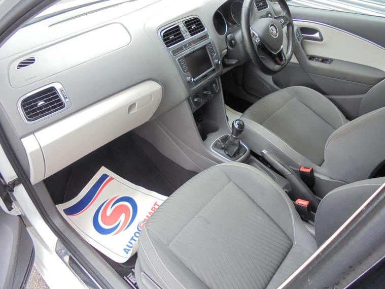 VOLKSWAGEN POLO 1.2 TSI BLUEMOTION TECH SE DESIGN 5 DOOR EURO 6.BRILLIANT WHITE WITH CONTRASTING GREY CLOTH INTERIOR LOOKS AND DRIVES SUPERB WITH LOW LOW MILEAGE AND FULL SERVICE HISTORY.IDEAL FIRST CAR WITH GREAT SPEC COMES WITH BLUETOOTH CONNECTIVITY, AIRCON, USB+AUX AND 15 INCH GREY ALLOYS WITH 2 KEYS.VERY ECONOMICAL £20 A YEAR ROAD TAX AND 60MPG.MOT UNTIL OCTOBER 2026 AND FRESH SERVICE.12 MONTHS FREE AA BREAKDOWN COVER AND 15 MONTHS WARRANTY INCLUDED IN PRICE.FINANCE AVAILABLE P/X WELCOME..