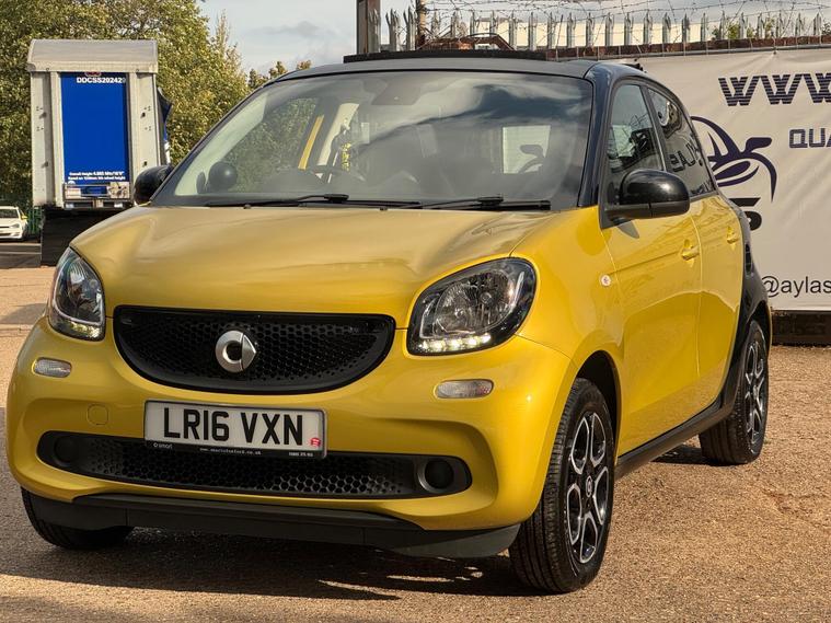 This 2016 Smart forfour T Prime Night Sky is a standout example, boasting a clear vehicle history and having been cherished by only two owners. Under the bonnet, you'll find an efficient 0.9L petrol engine that meets Euro 6 emissions standards. Its distinctive Tridion Safety Cell is finished in a stylish Graphite Grey Matt Paint, complemented by 16 inch alloy wheels painted in black. Inside, you can enjoy your favourite stations with DAB digital radio and stay connected on the go thanks to the Bluetooth hands free system. A perimetric alarm system adds an extra layer of security.This Smart forfour offers excellent running costs, with an impressive fuel economy of 66 miles per gallon, making it a very economical choice. Its low CO2 emissions and low insurance group rating further highlight its cost effectiveness compared to many other vehicles. These factors combine to make this particular Smart forfour T Prime Night Sky a sensible and appealing option for those seeking a practical and well maintained compact car..