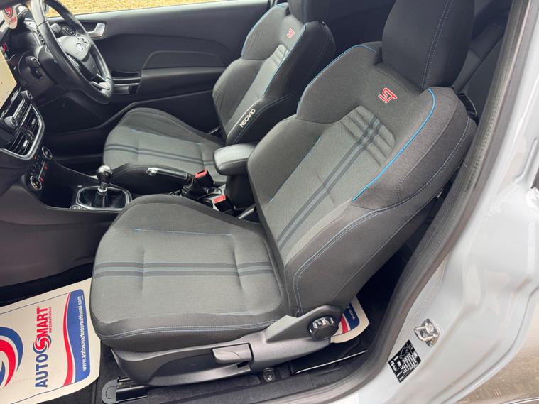 Boasting exceptionally low mileage for its age, this 2018 Ford Fiesta ST-2 presents a compelling proposition with an impressive 34, 550 miles on the clock. Powered by a lively 1.5L Petrol Engine, this Euro 6 compliant model offers brisk performance, achieving 0-62mph in a swift 6.5 seconds. Its provenance is further assured with a clear vehicle history check, a full service history, and an MOT valid until October 2026. The last service was completed on 2025-04-11 at 31, 839 miles, and the vehicle comes with a 18 month warranty for your peace of mind.This Fiesta ST-2 is equipped with desirable features that enhance the driving experience. Enjoy your favourite music through the B and O PLAY In-Car Audio Premium Sound System, and stay comfortable with Electronic Automatic Temperature Control air conditioning and heated driver and passenger seats. Automatic headlights add convenience, and the NCAP Pack further enhances safety. These features, combined with its outstanding acceleration and excellent condition, make this Ford Fiesta ST-2 a standout choice compared to other vehicles in its class..