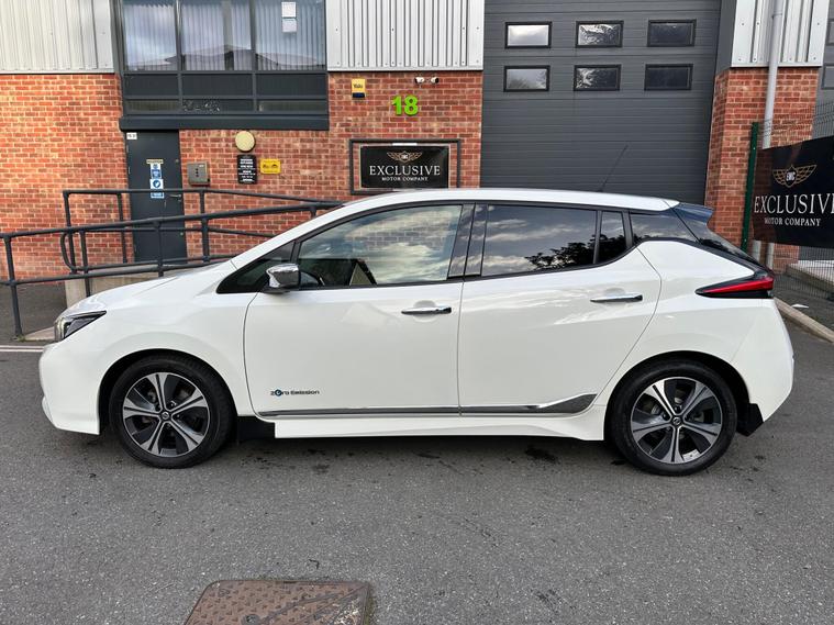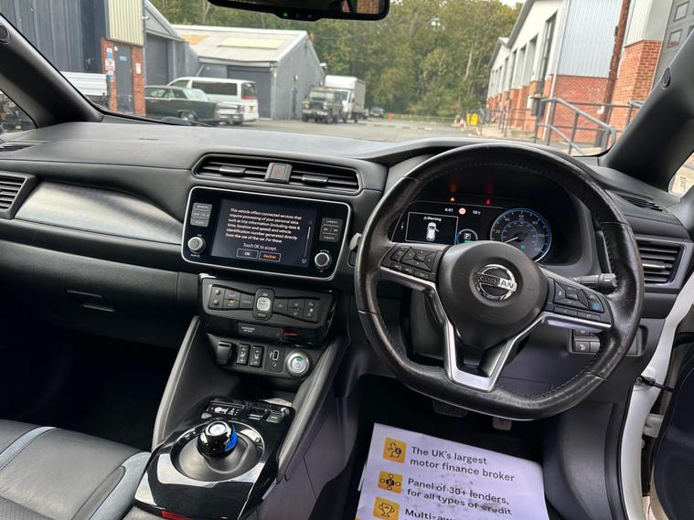 This 2019 Nissan Leaf Tekna presents an exceptional opportunity with its remarkably low mileage of just 29, 637 miles for its age. As an electric vehicle, it offers a smooth and quiet driving experience, powered by a 40 kWh battery that provides a maximum range of 168 miles when new. Charging is convenient, with a full charge at home taking approximately 7 hours and 30 minutes using a 7kW charger, while rapid public charging can take you from empty to 80% in just 1 hour and 20 minutes. This Tekna trim also boasts a BOSE Premium Audio System with 7 speakers for an immersive sound experience, a heated steering wheel for comfort on colder days, and automatic headlights with a dusk sensor.Further enhancing this Nissan Leaf Tekna are its intelligent features designed for ease and safety. The AVM with Moving Object Detector provides a 360 degree camera view, making parking and manoeuvring significantly simpler. The intelligent auto headlights with full LED technology ensure excellent visibility at night. Beyond these advanced features, the Leaf offers a generous boot space, making it a practical choice for everyday needs and longer journeys. These highlights collectively demonstrate the superior comfort, convenience, and technology offered by this particular Nissan Leaf Tekna compared to other vehicles in its class..